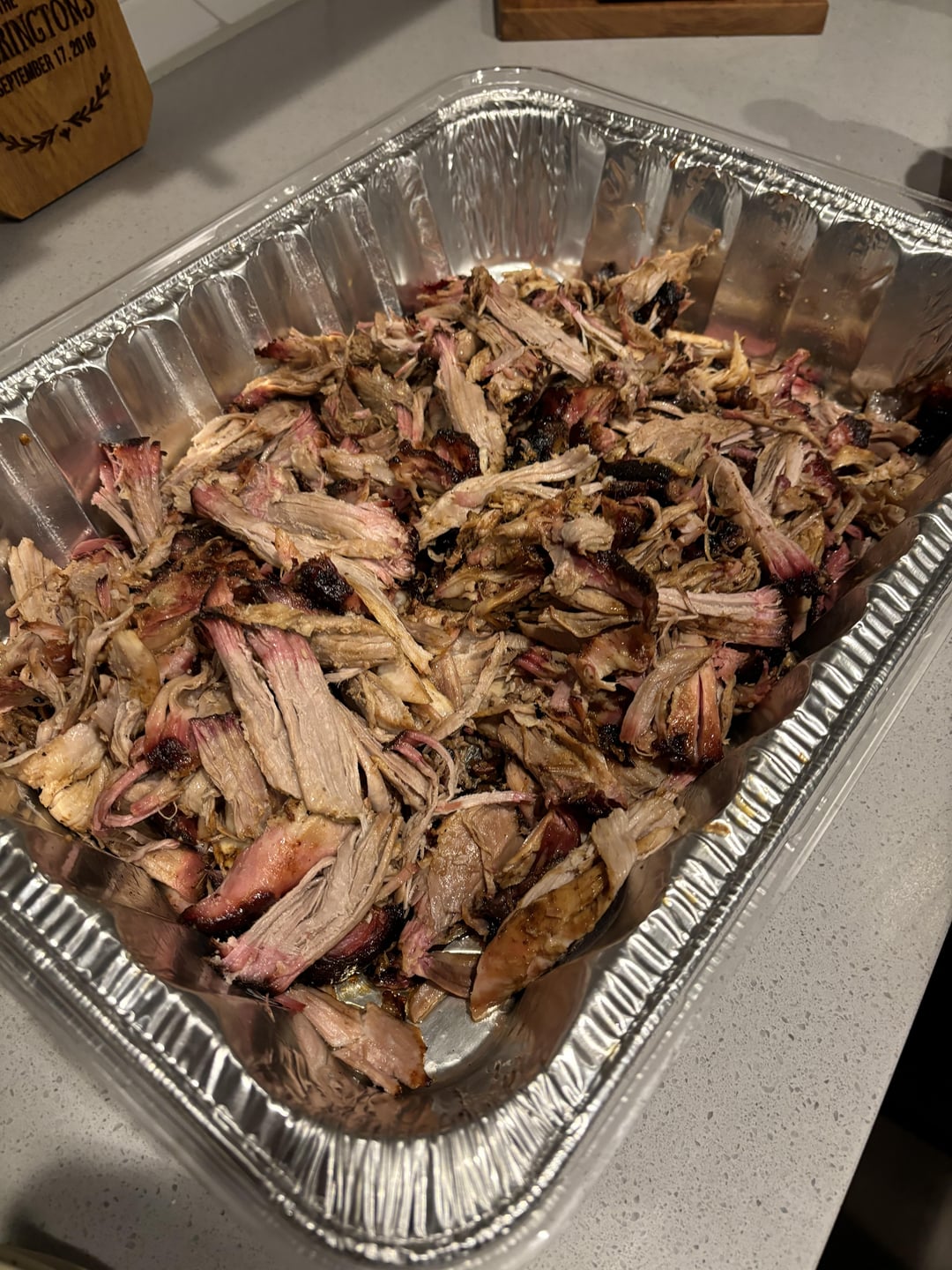No wrap butt, 8 pounds. Smoked for 10 hours at 225F, rested for 1 hour. My mother in law went for seconds which never happens.