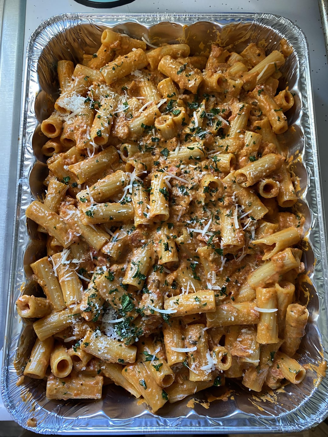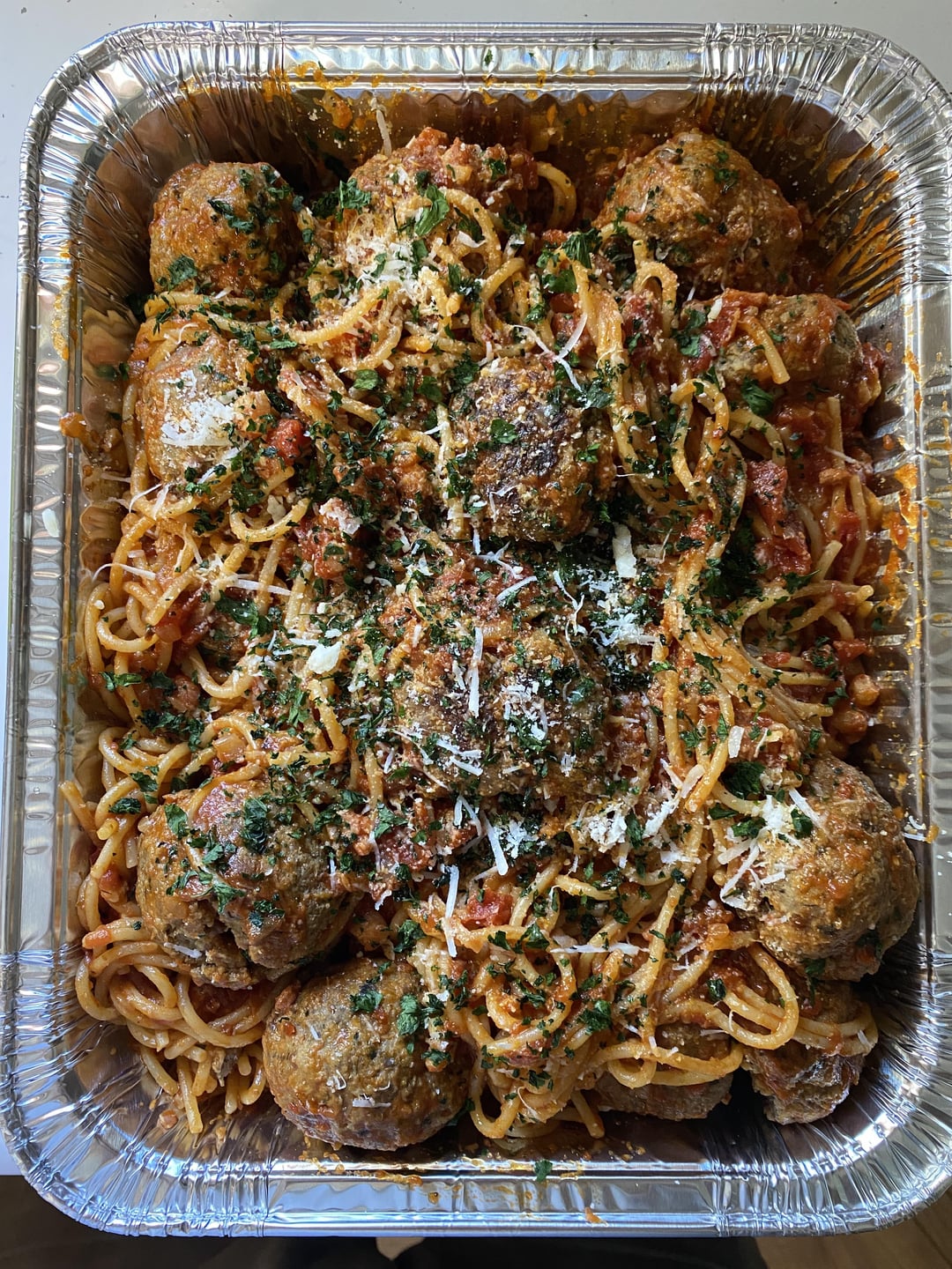 I did a little extra because it was also the work Thanksgiving potluck today. Rigatoni in vodka sauce, spaghetti and duxelles meatballs in marinara, and two blueberry dump cakes.