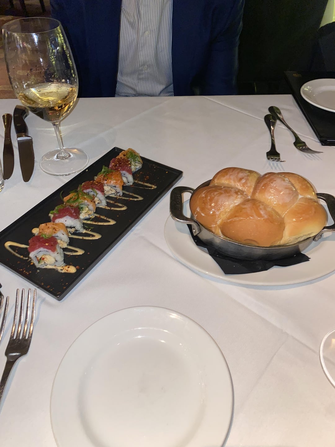Oxidative notes on the nose. I particularly got a lot of nuttiness (sweet almond, liquified marzipan, toasted almond syrup, light colored syrup). I was impressed by the acidity the wine still had. Despite being almost 29 years old, it was still very vibrant. I got notes of granny smith apple, pear, and underripe fruit. My girlfriend got notes of hazelnut on the nose and white peach and green mango on the palate. This reminded us both a little of Krug NV, but the different styles of the houses was apparent. The wine had a medium to long finish and was a perfect way to kick off the celebrations. We paired it with a salmon rainbow roll and the house bread. 97 points.