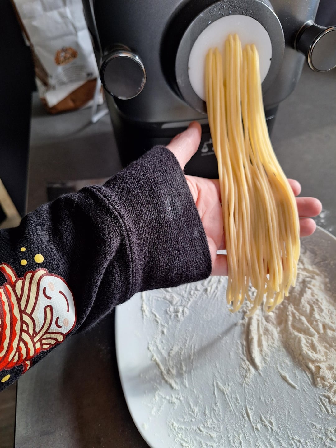 Just made some fresh spaghetti as a birthday gift. Gifted it together with a jar of amatriciana and some parmagiano/ pecorino. Sadly forgot to take pics of the sauce.00 flour, eggs and water.by Pink_aipom Write A CommentYou must be logged in to post a comment.