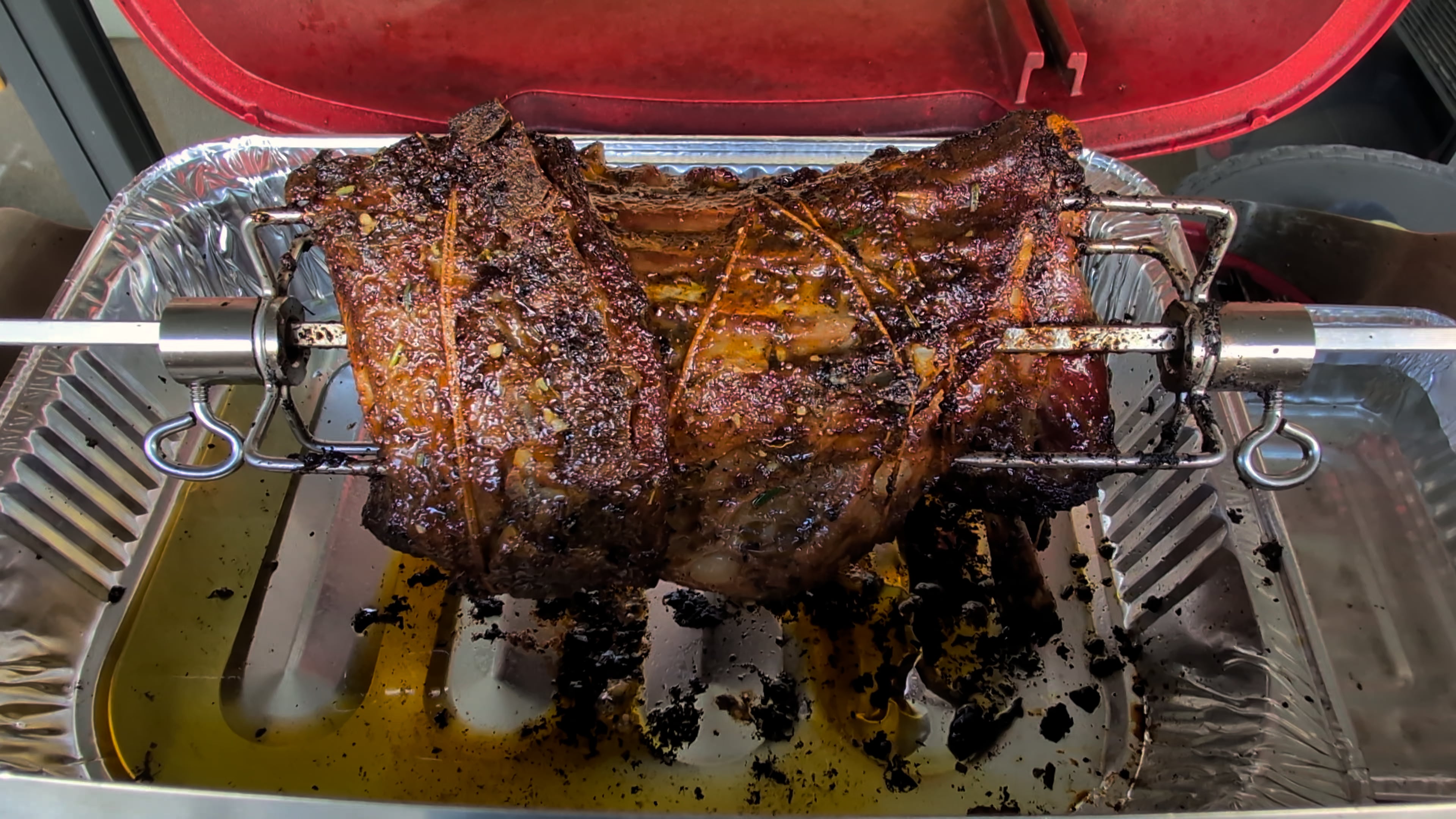 Cooked between 120 to 150C ambient until internal temp reached 95C. Basted every hour with an olive oil, lemon and garlic mixture. Took about 5hrs