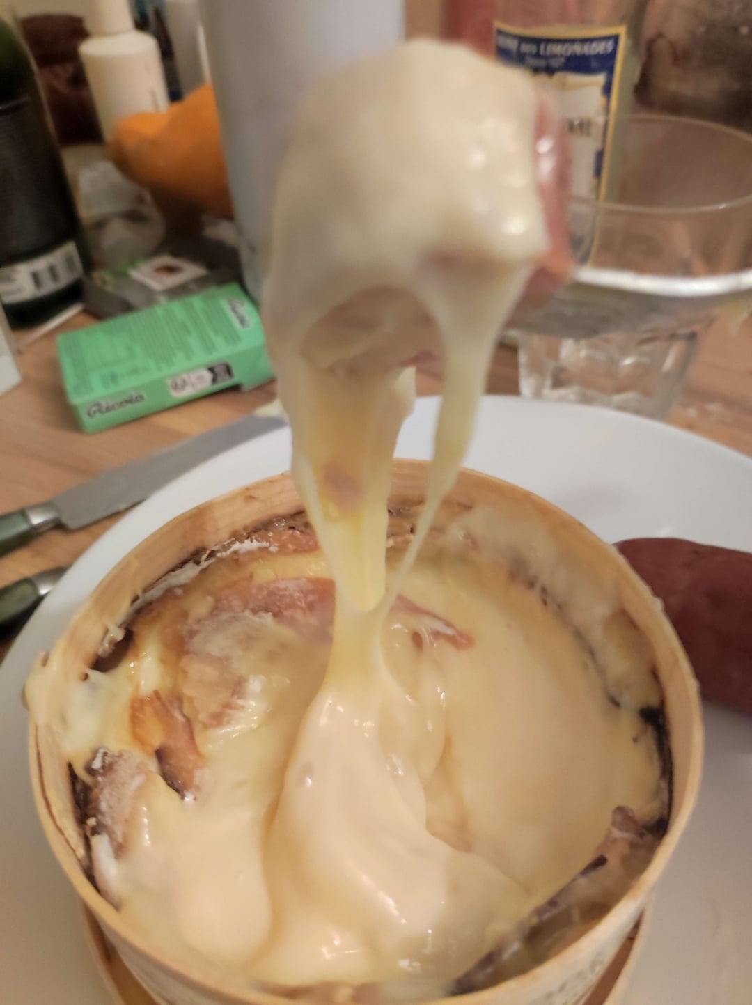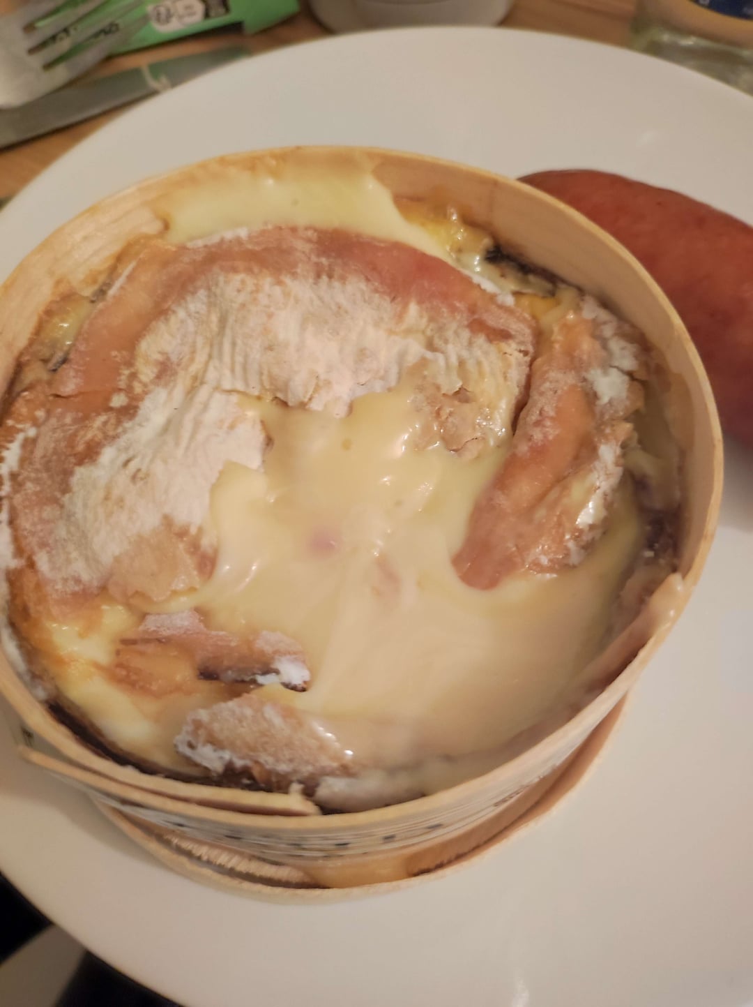 Mont d’Or cheese, that is in an encircled wooden box, that you have to put inside oven then eating it molten and hot with potatoes/sausages/bread/anything