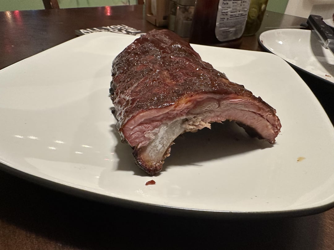 321 ribs. I used a mustard binder with a pork rub. After 3 hours honey and apple juice. Final hour sweet bbq sauce and a spritz of ACV