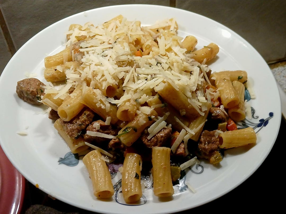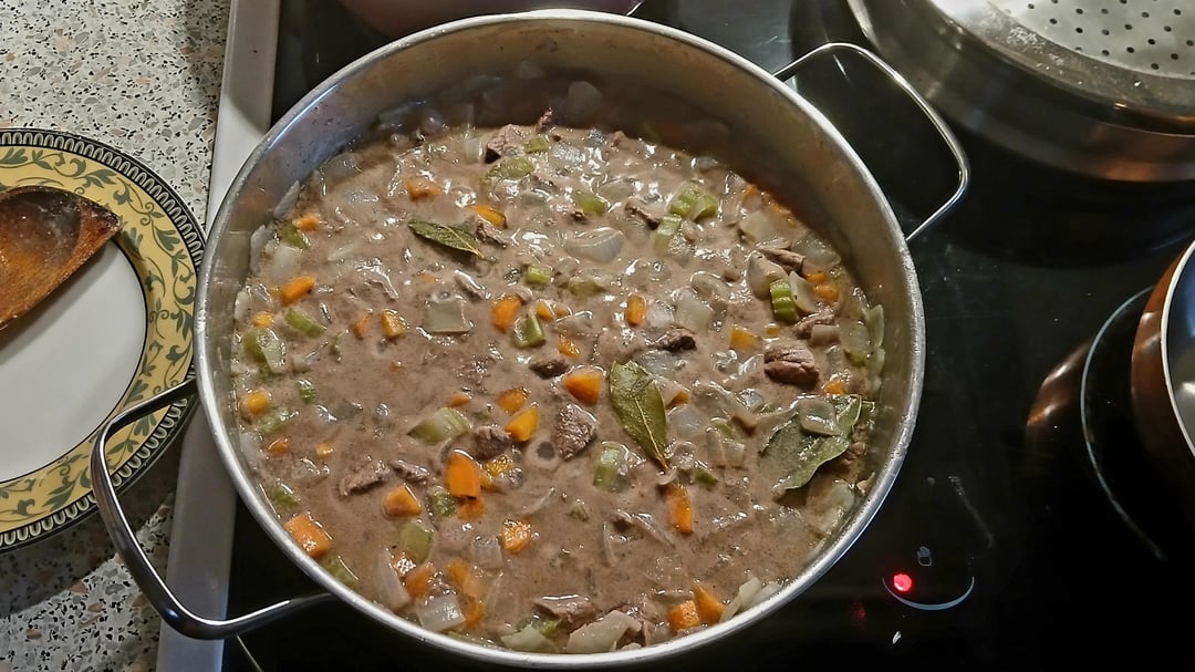 I didn't dare to cut the veal and vegetables any smaller because the people I ate it with wanted some more texture in the dish. The same goes for the coursly grund cheese.