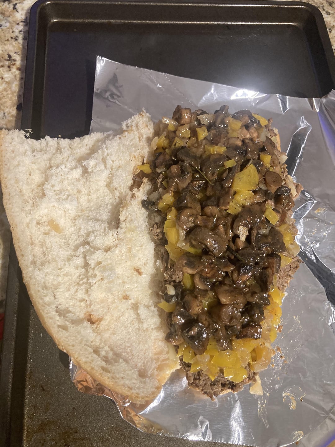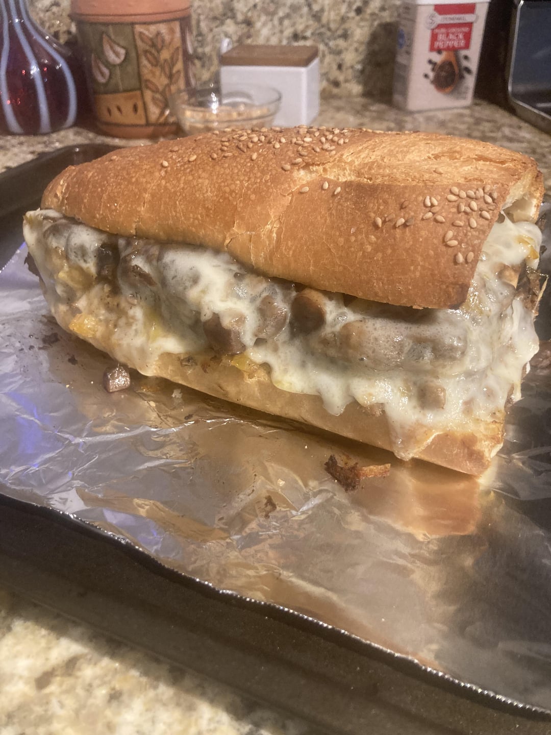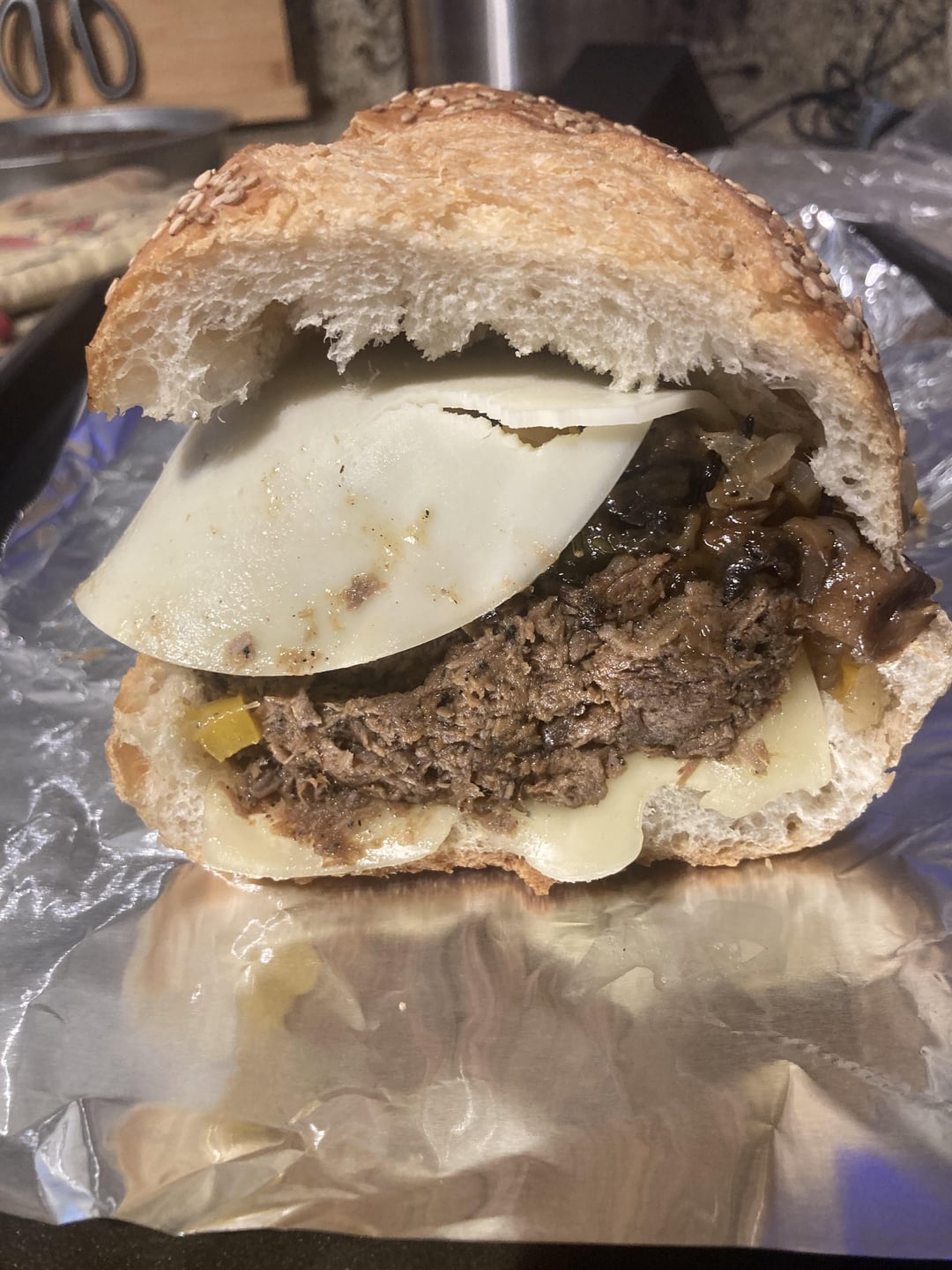 Re-heated braised beef with sautéed onion, yellow bell pepper, button mushroom + melted Swiss and provolone on a toasted hard seeded roll.It hit every spot. by paulsoleo 5 Comments ResponsibleSupSerena 12 months ago Well done 👍🏼 poopypantspoker 12 months ago Nice work. I’m thinking in a hypothetical world I’d add a mango salsa for some reason BohdiBrass 12 months ago Would love a bite Both_Owl_2393 12 months ago Have mercy. Nicely done, friend. No_Caterpillar9737 12 months ago This is the kind of innovation I’m here for. Well done sandwich daddy 🙏Write A CommentYou must be logged in to post a comment.