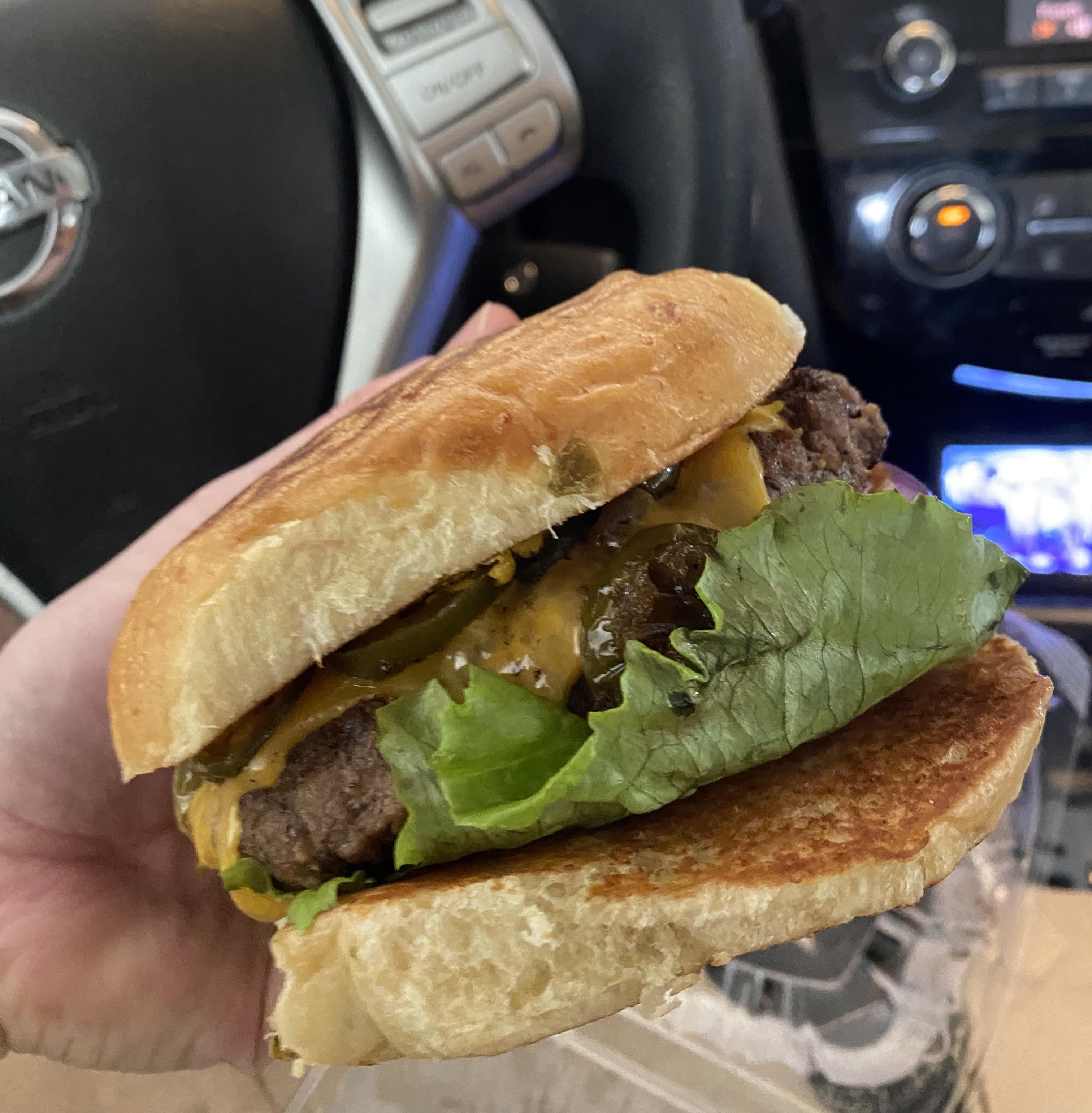This burger with jalapeños on a Jalapeño sour dough bun was a banger