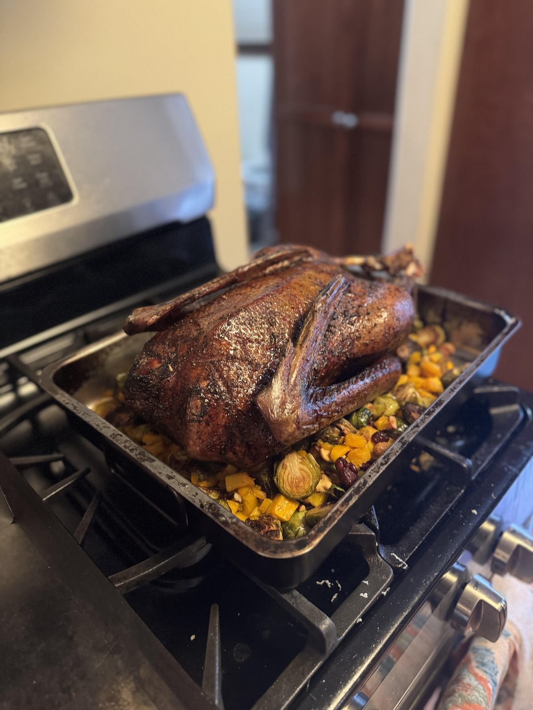 I hate turkey, so I smoked a 12lbs goose for Friendsgiving. Everyone loved it. Recipe: https://www.thespruceeats.com/smoked-goose-recipe-335509