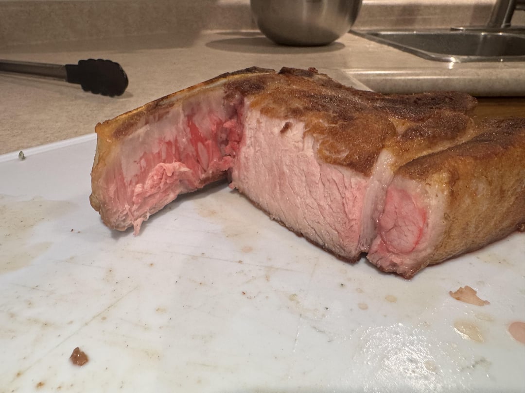 All the pictures I could see on the internet weren’t as red as it looks in the corner. Maybe there was a vein or something but I was nervous it’s undercooked somehow.