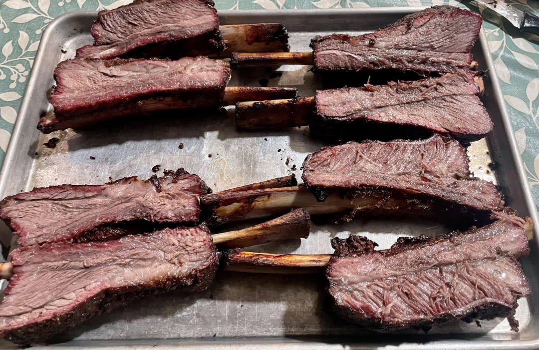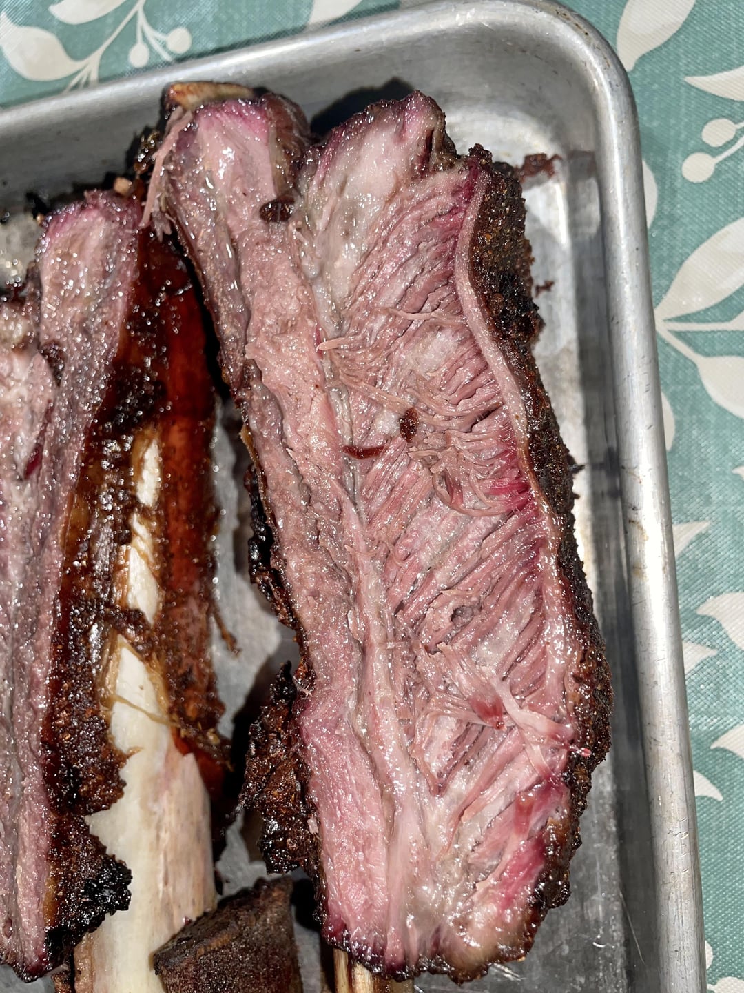 Roughly a 7 hour cook a little rushed but came out great. Just picked up some plate short ribs for thanksgiving after giving these a go. Can’t wait to get down on the Dino ribs for the first time.