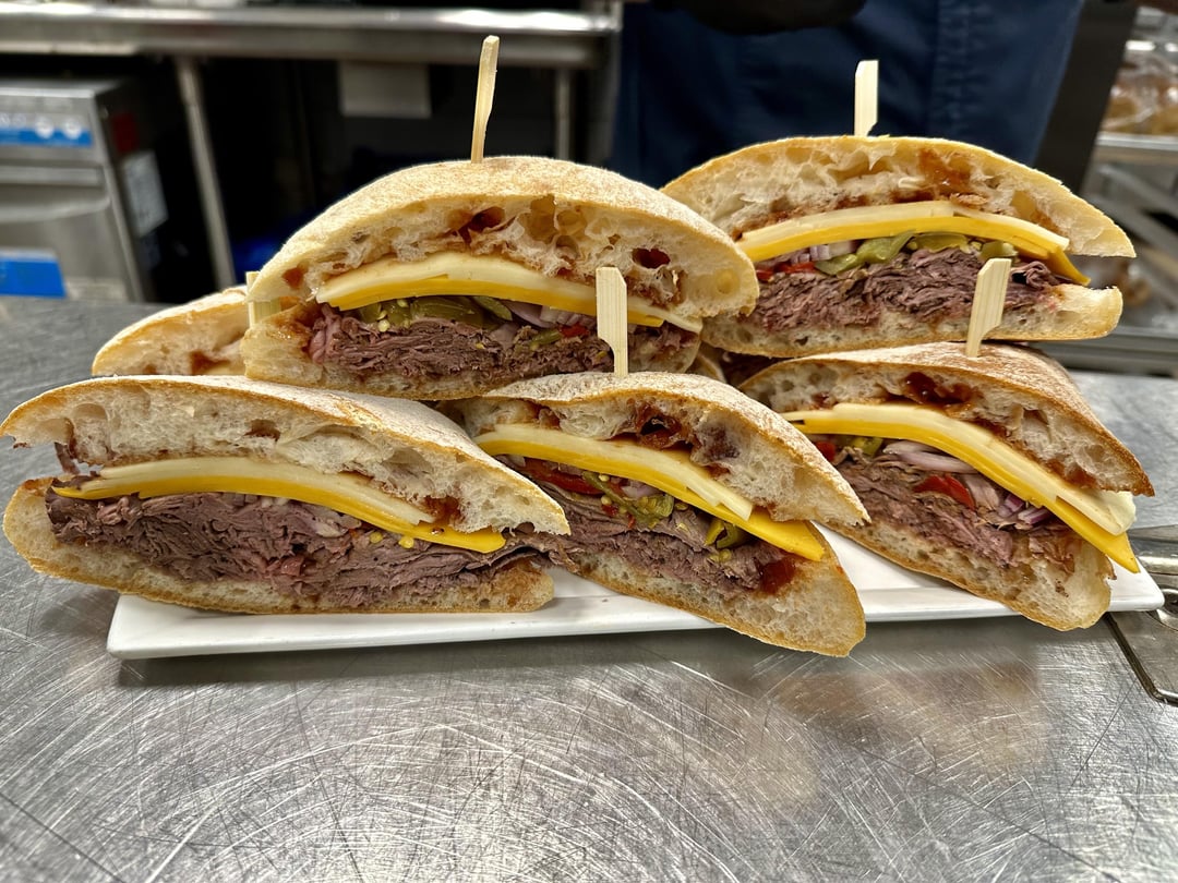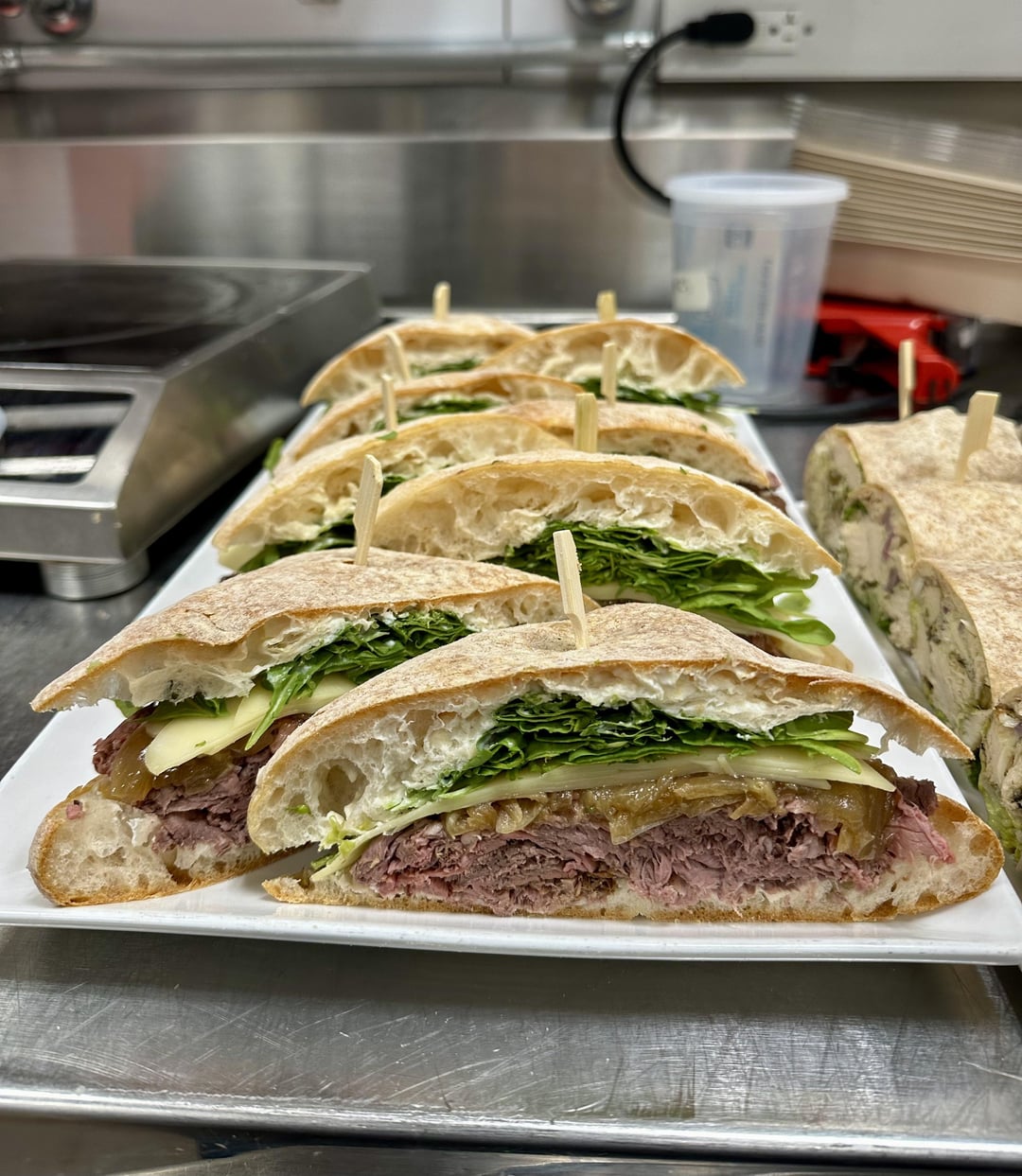 Roast beef, Swiss and Gruyère. Roast beef and swiss. Chicken Caesar. Caprese.