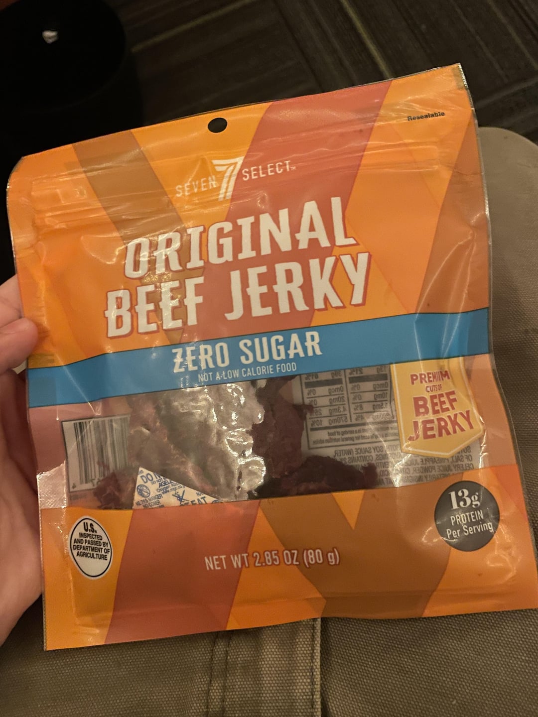 Insane macros on this beef jerky??by noahreyes_ 3 Comments ashtree35 1 year ago That’s pretty normal for zero sugar jerky. It’s basically just meat. IOUAndSometimesWhy 1 year ago Protein has 4 calories per gram so 39 x 4 = 156 calories from protein. Looks like it has negligible fat and carbs for the remaining calories so checks out. OldVeterinarian7668 1 year ago That’s a good idea for a snackWrite A CommentYou must be logged in to post a comment.