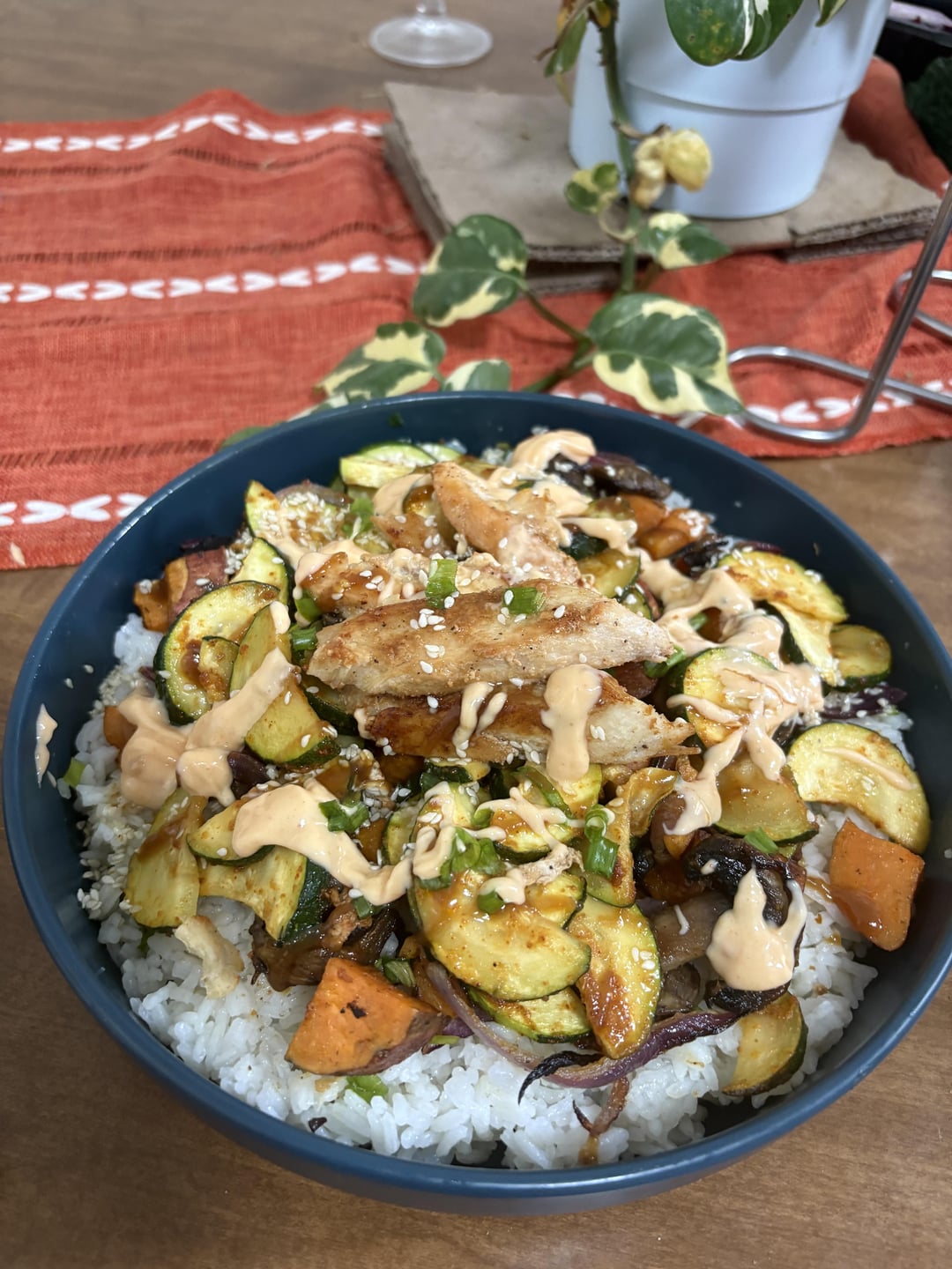 over Lime Rice with Zucchini & Creamy Chili Sauce