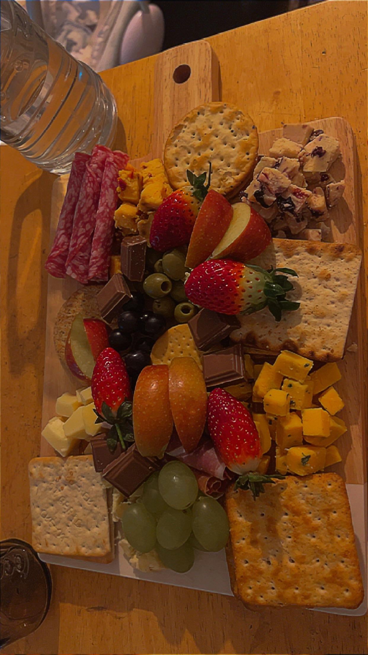 This is the first ever charcuterie board I made, for my boyfriend and I, last year on Christmas Eve. I enjoyed it but my boyfriend only liked some of it. I might try it again this year. I bought the chopping board specifically for the charcuterie 😅 Now I use it as an actual chopping board