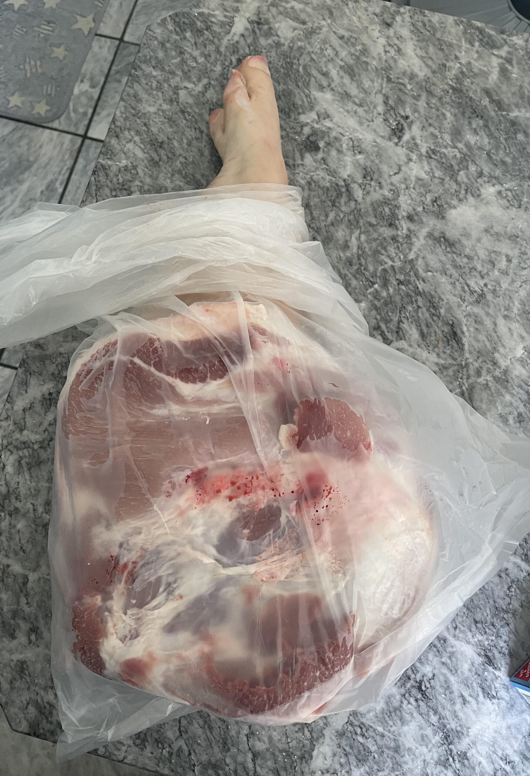 So I went and ordered a pork shoulder at my local butcher. They told me to come back today to get it. I go in and they cut the dang thing right in front of me and handed me the whole thing in a bag. It was a wild ride. Not sure my wife will ever recover from this 😂. Not even sure how much the whole thing weighs. Maybe like 16 pounds (7.5ish kilo). Told my wife to avoid the fridge when we get home from work lol. Any advice on separating the leg, or should I just send it and cook the whole thing? I really don’t know if my wife would be able to eat it if it comes off the grill that way lol.