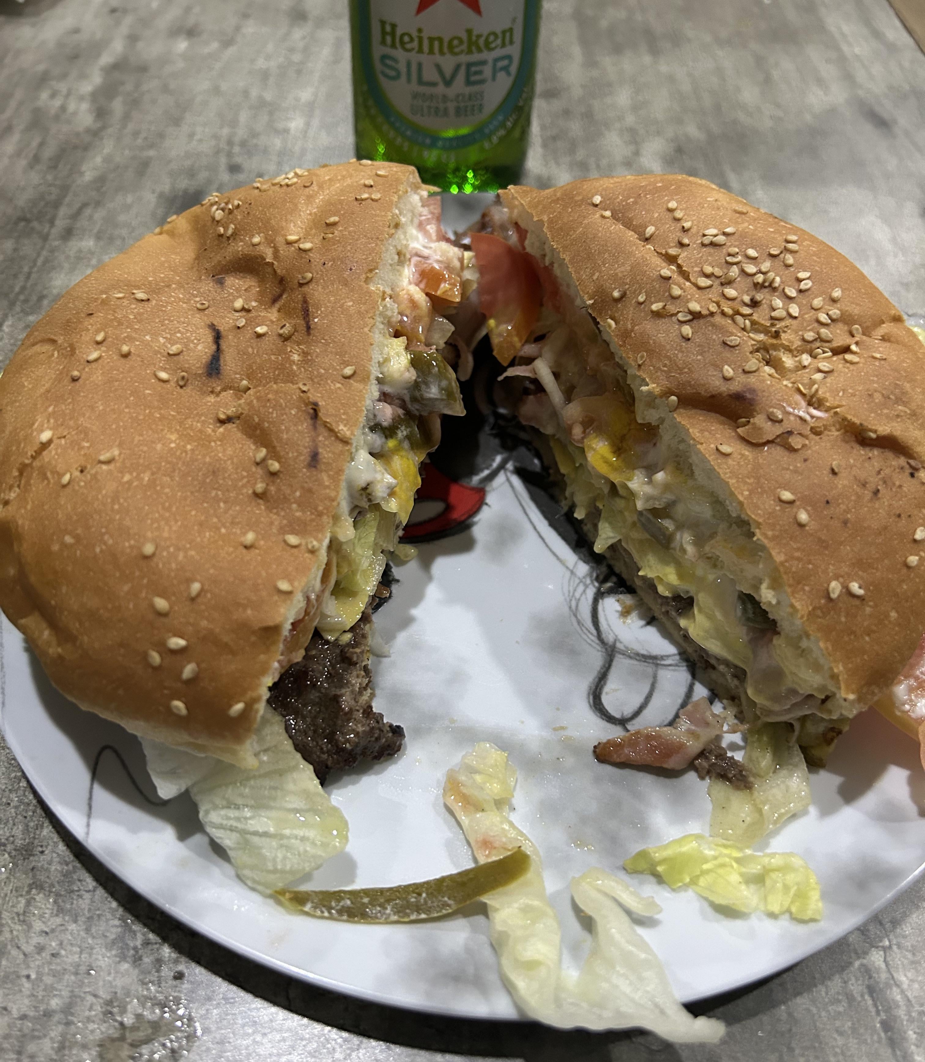 Homemade Monday Night Burgers.by Xlina_1310 5 Comments TalkOk4096 11 months ago What’s the toppings? TalkOk4096 11 months ago Can’t wait to see your Thanksgiving Spread. sixpigeons 11 months ago The design on your plate had me thinking there was a clump of hair in your burger SUPRVLLAN 11 months ago Is Silver a non-alc beer? Gs4life- 11 months ago Almost thought that was hair like the other guy.Write A CommentYou must be logged in to post a comment.