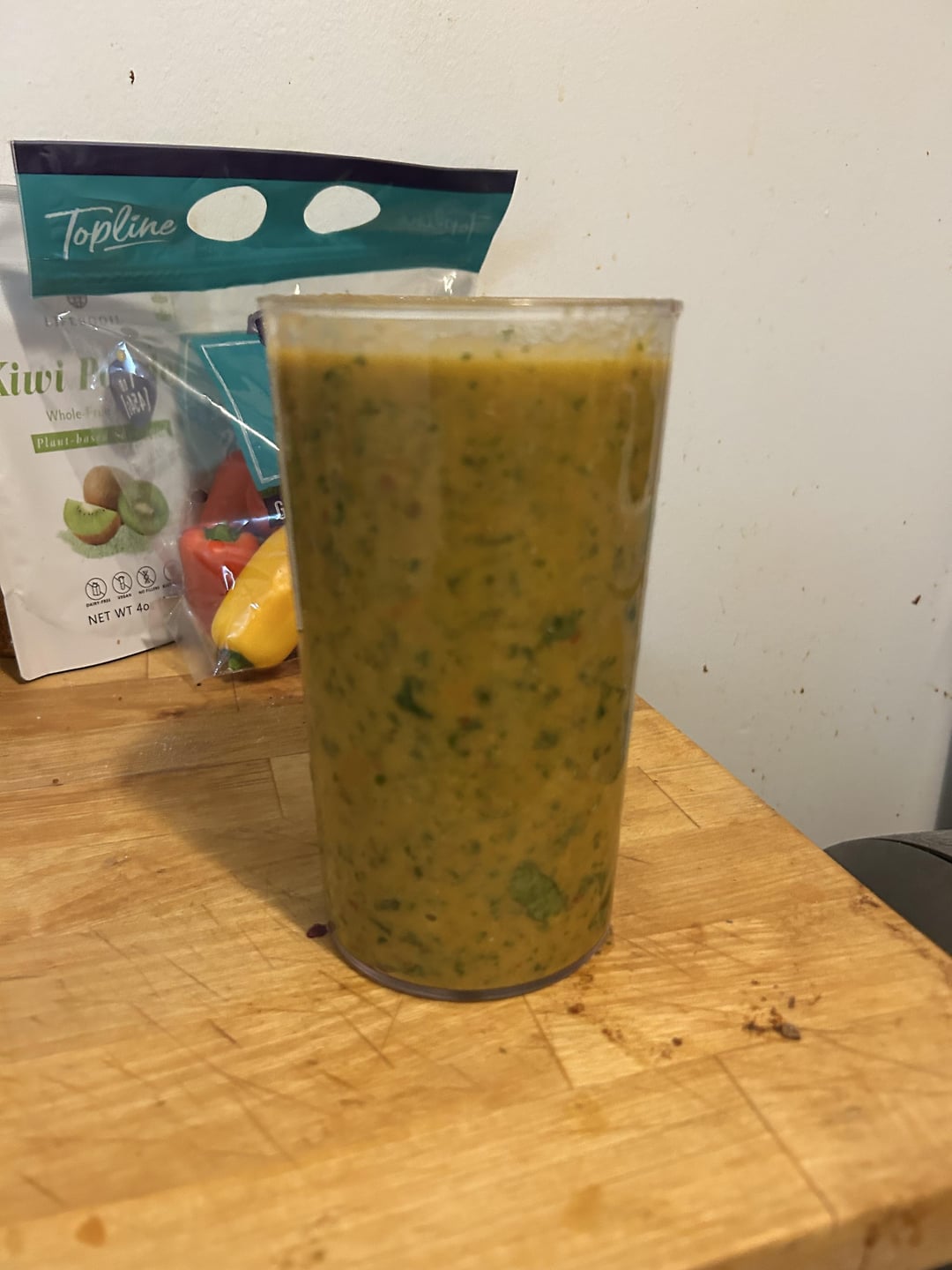 Blended the veggies with the liquid from the pan, the lime juice and a whole bunch of cilantro.