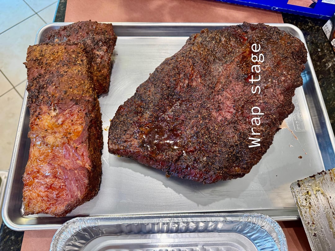 Every holiday needs a brisket – cooked mine on Sunday. Meat Church Holy Cow with a dusting of The Gospel. Super smoke for 12 hours – juicy! Love the bark with the super smoke!