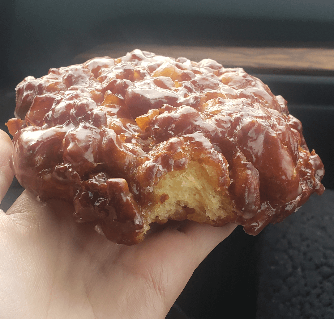 That’s one luscious-looking deep fried apple fritter donut 🍩 🤤