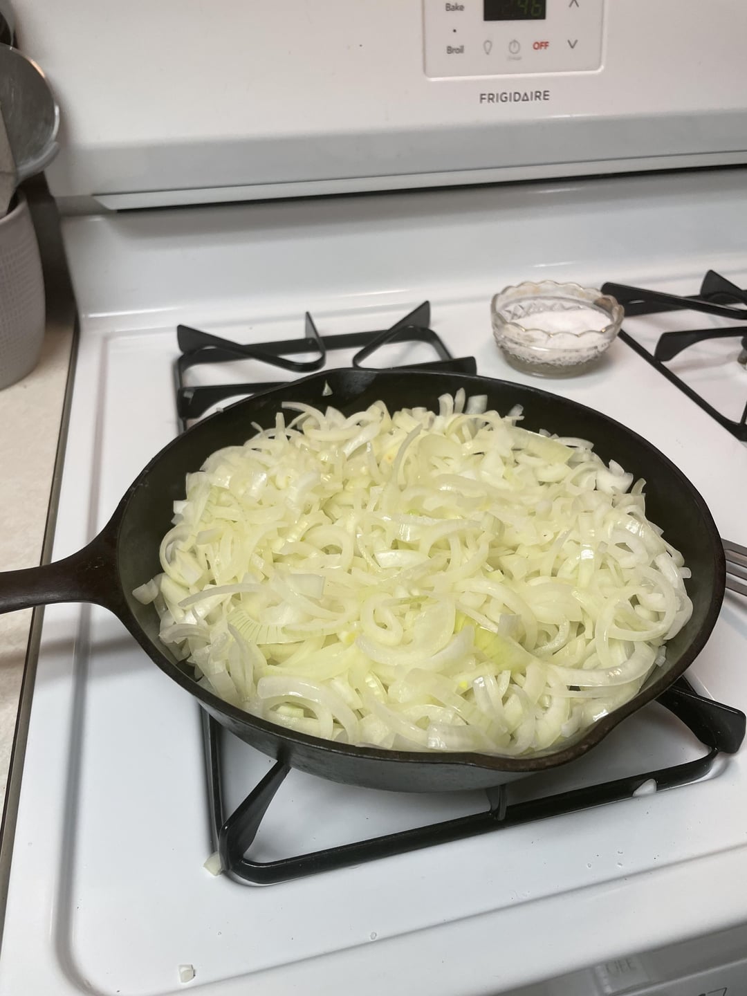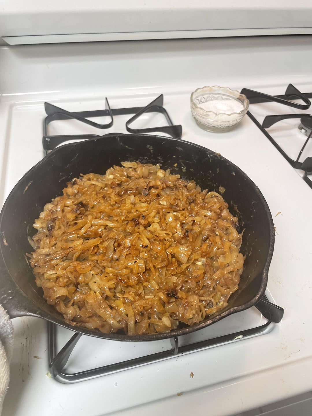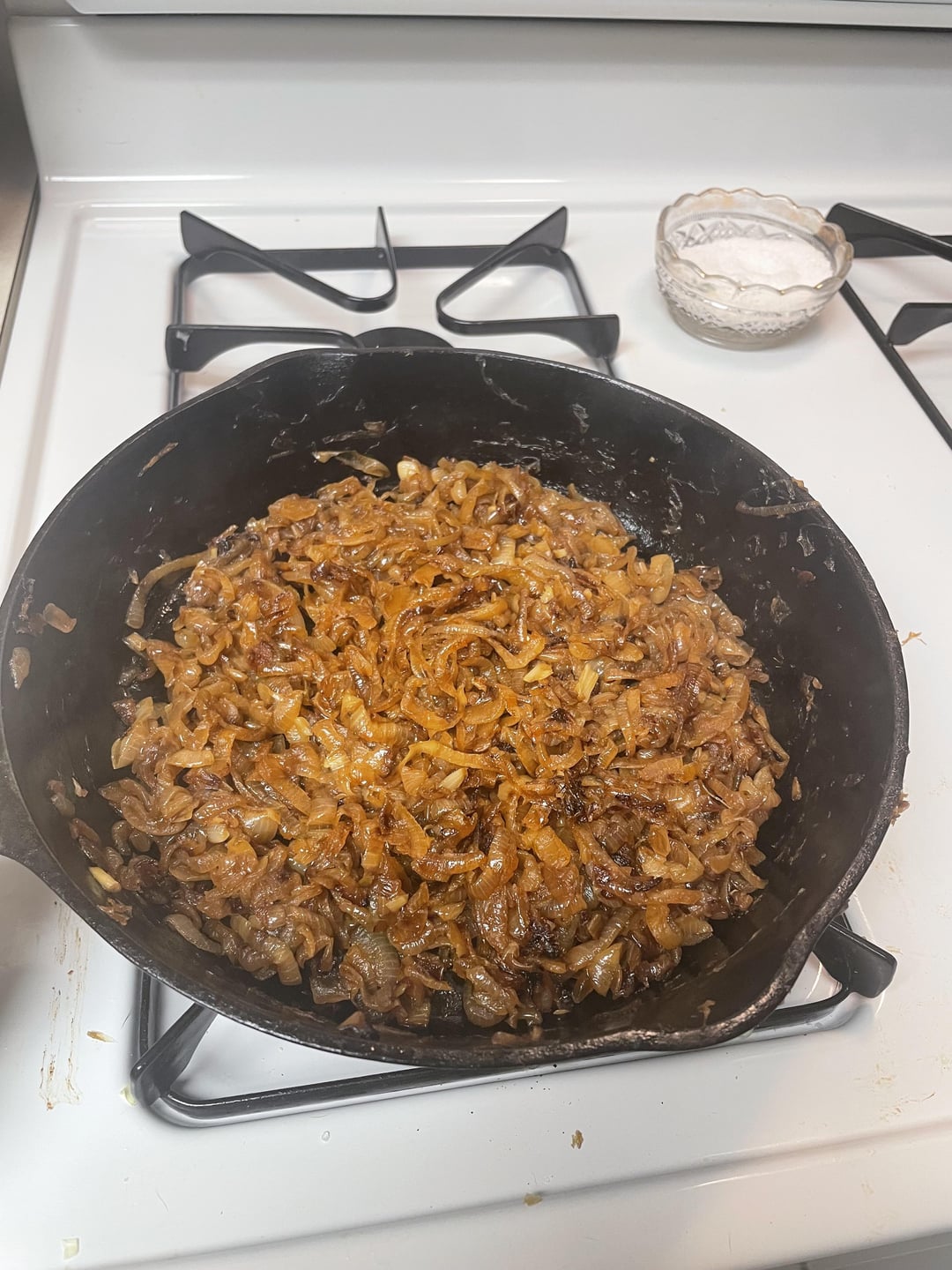 Cast iron pans elevate caramelized onions from perfection to divinity! Cast iron and low heat create a unique texture that’s impossible to replicate. Excellent choice of cookware. 33/6.