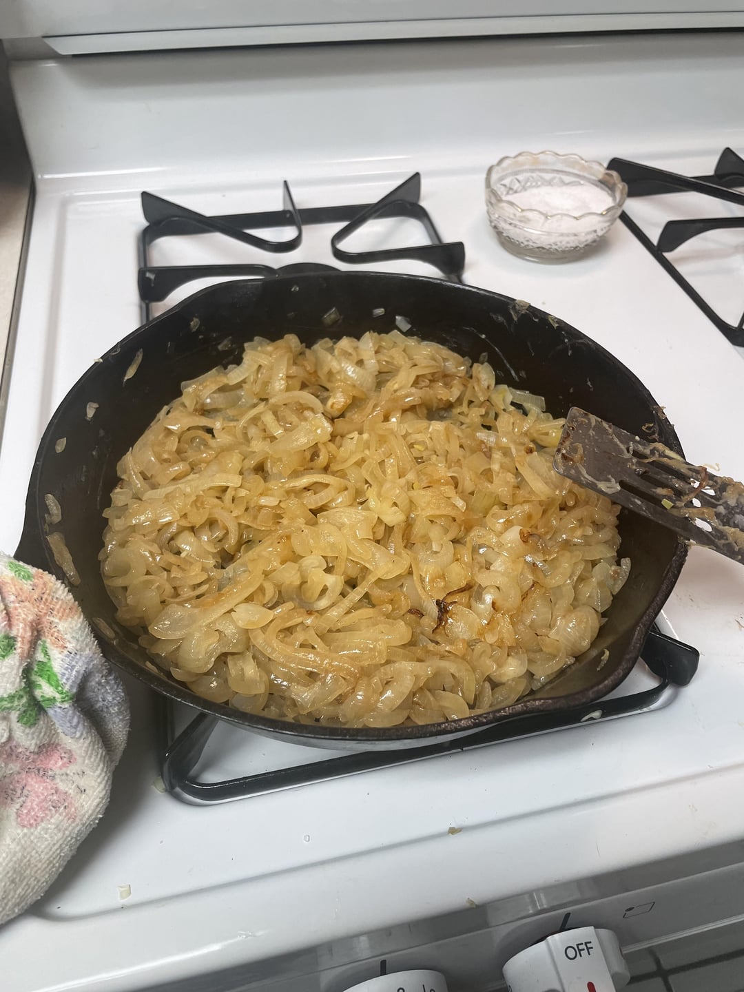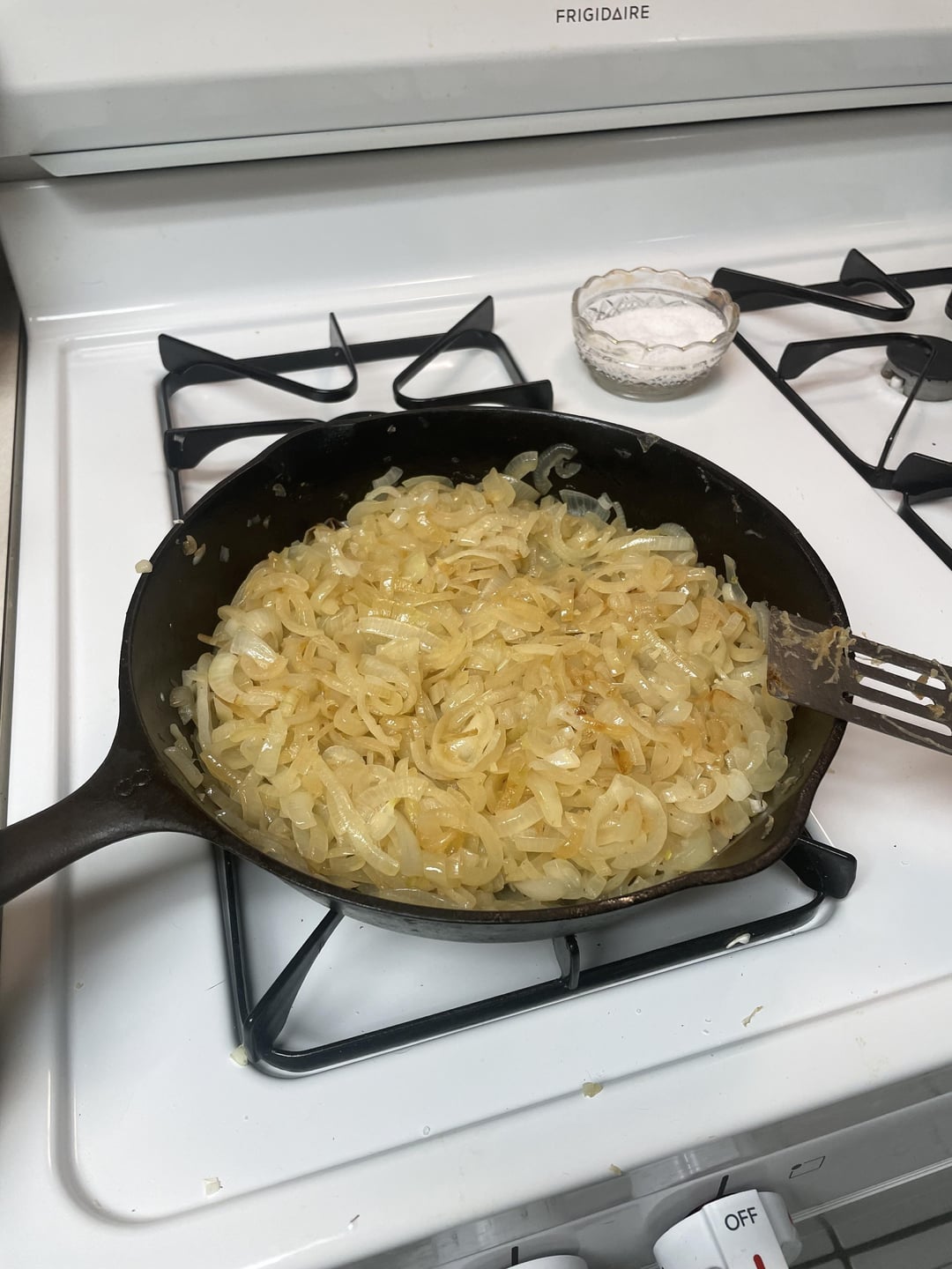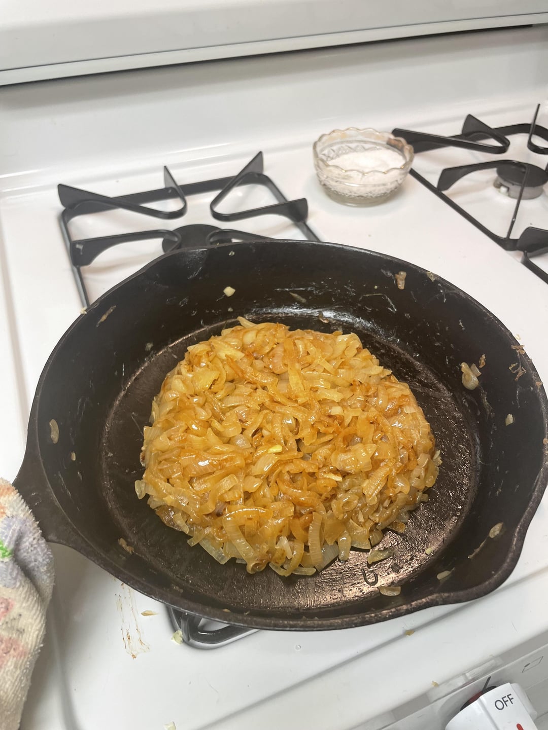 Cast iron pans elevate caramelized onions from perfection to divinity! Cast iron and low heat create a unique texture that’s impossible to replicate. Excellent choice of cookware. 33/6.