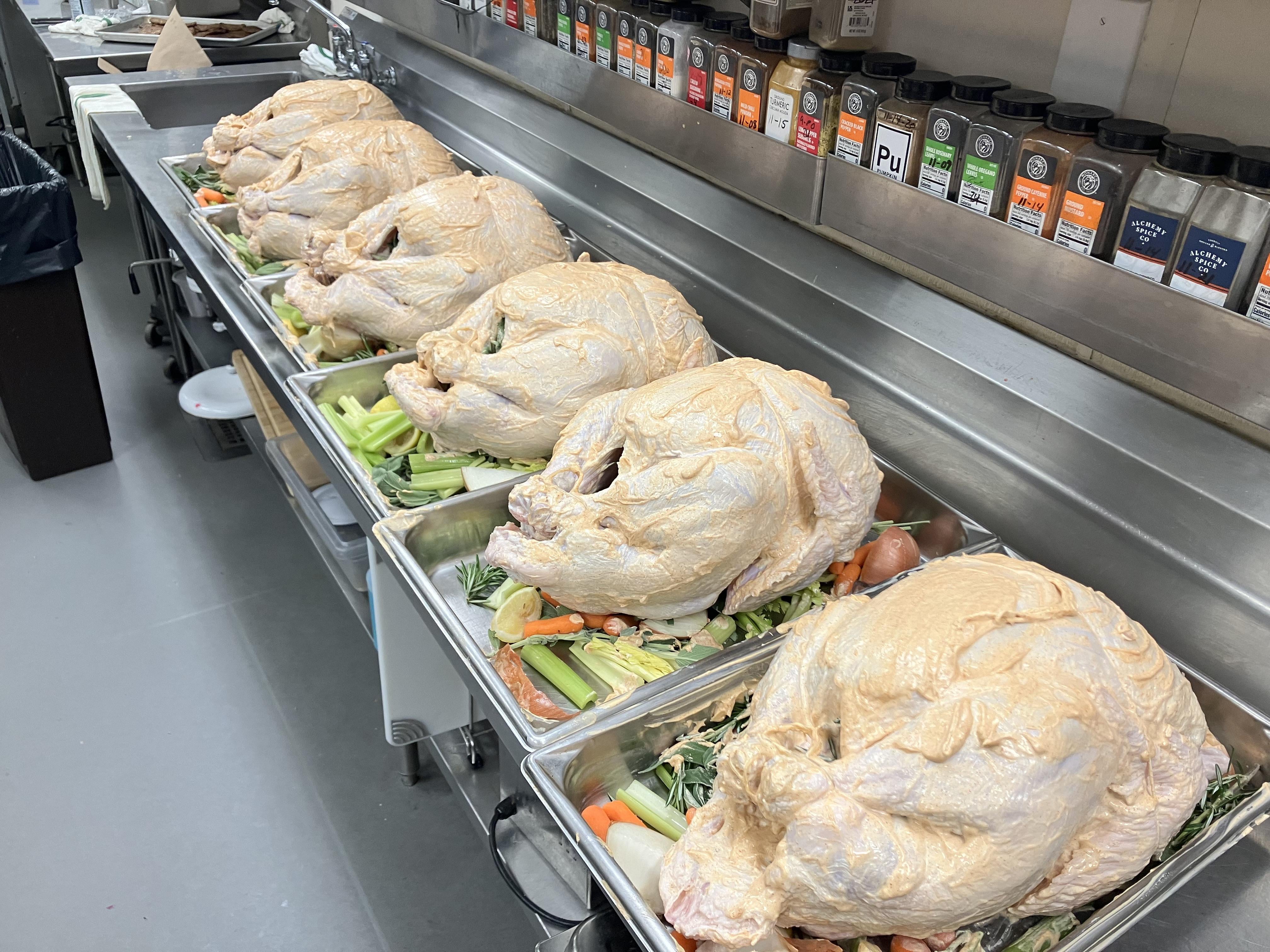 Man I’m so glad I don’t do Thanksgiving dinners anymore. Many memories of freezing my ass off in a rented cooler truck (because our kitchen was too full of other prep to do 80 odd turkeys) and cutting my numb fingers to the bone cleaning birds.