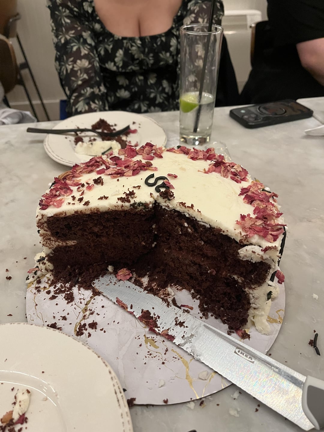 Chocolate with raspberry/chocolate filling and champagne buttercream