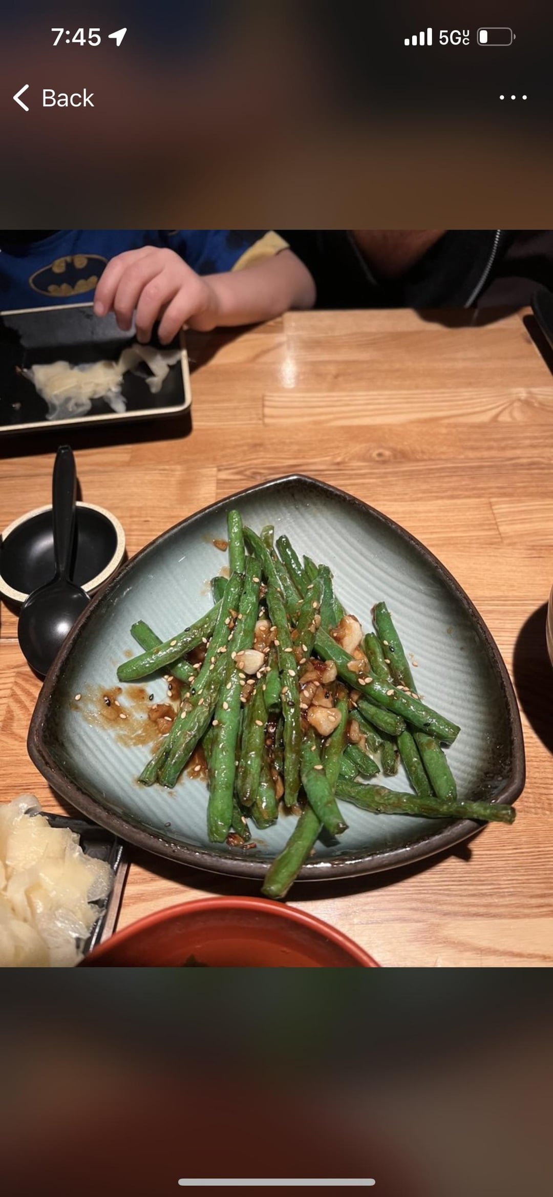 first photo is a vegetable tempura roll that has sweet potato, green bean, and onions and the rolls were pretty large. second photo is garlic green beans (i only had like 6 beans) third photo is garlic green beans and i had like 5 beans. idk how i would calculate this so any estimate on any of the items is appreciated!!