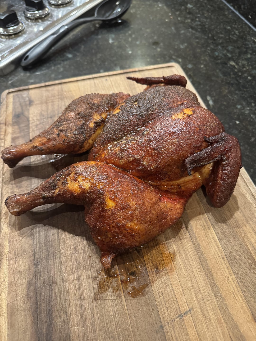 Dry brined it. tried two different rubs to compare them and test for thanksgiving. Left is homemade, right is maple bourbon.