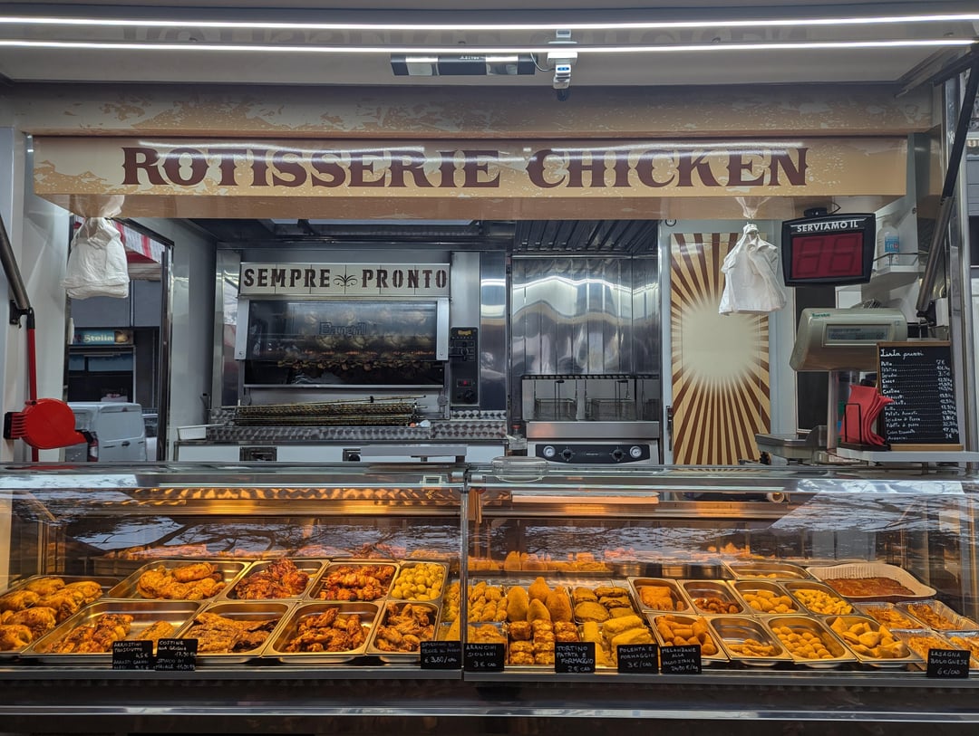 Love it! Two cents – move the price board (if it is a price board) up above your head so people a few metres away can evaluate and be enticed closer to your chickeny wares…