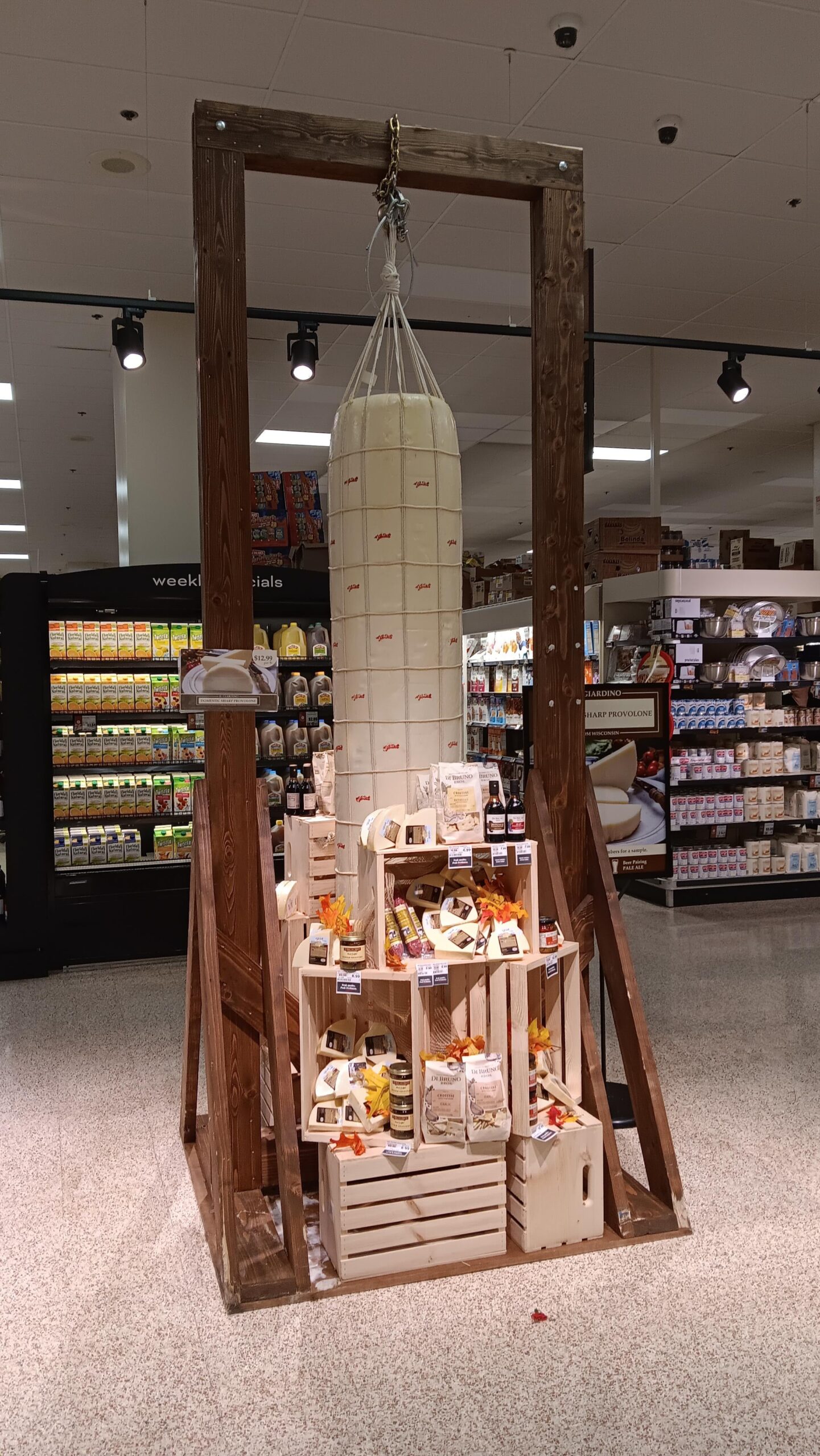 There’s a massive log of cheese hanging from a gallows in my local grocery store: by Wizzamadoo Write A CommentYou must be logged in to post a comment.