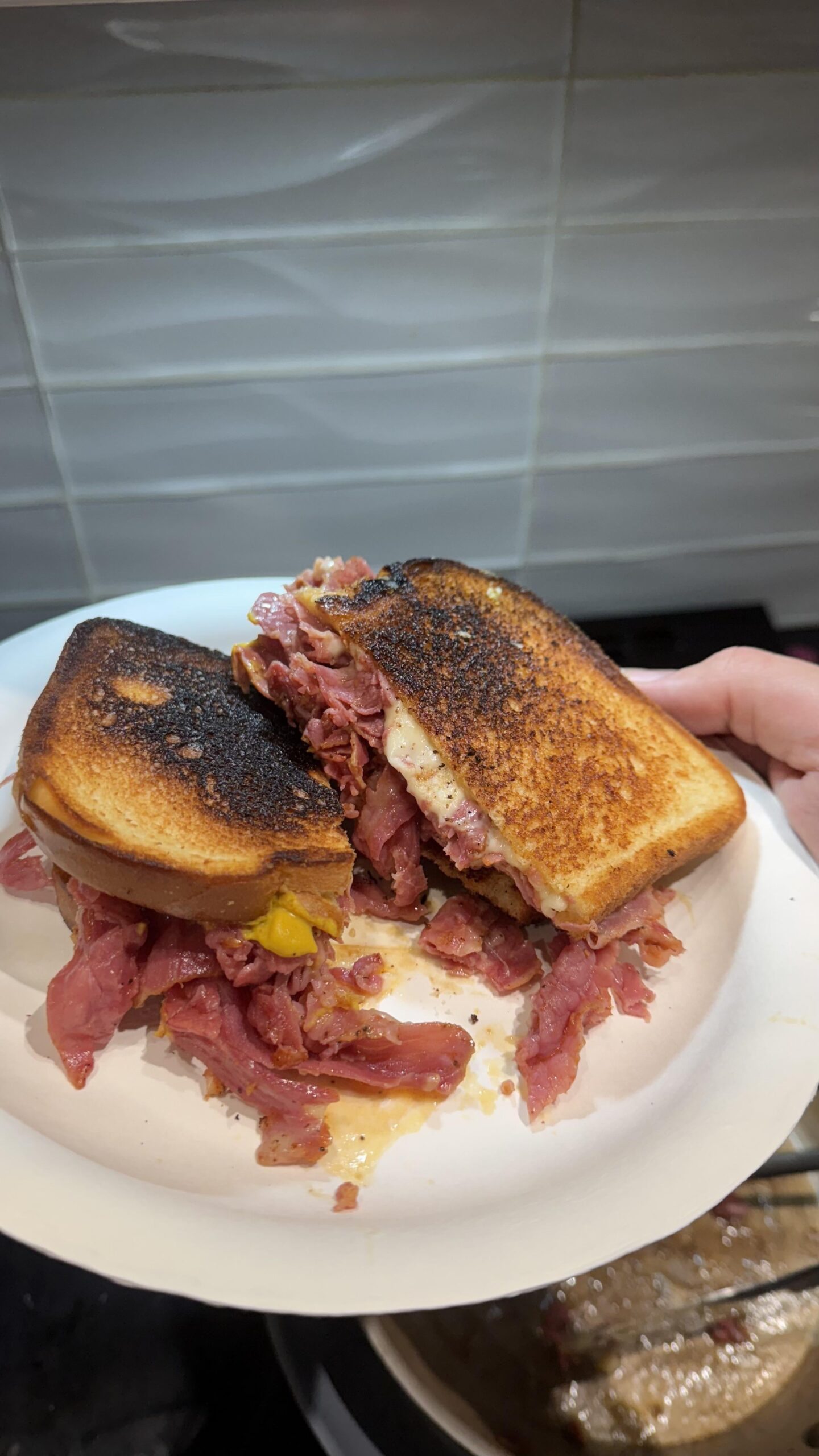 Lil burnt but it’ll have to doby WillNeighbor 7 Comments maggavin 12 months ago I like my toast a little dark, but lil tip if it gets too dark; Just use the edge of a butter knife and start scraping till the darker bits you don’t want have fallen off. stringstringing 12 months ago Nothin wrong with some char donttrustmeokay 12 months ago Dammit I want pastrami now Stephanierecipes16 12 months ago  Unfair_Holiday_3549 12 months ago Scrape the burnt off with a knife. the-caped-cadaver 12 months ago Mmm, just the way I like it. TikaPants 12 months ago Get to scrapin! 🫡🤌Write A CommentYou must be logged in to post a comment.