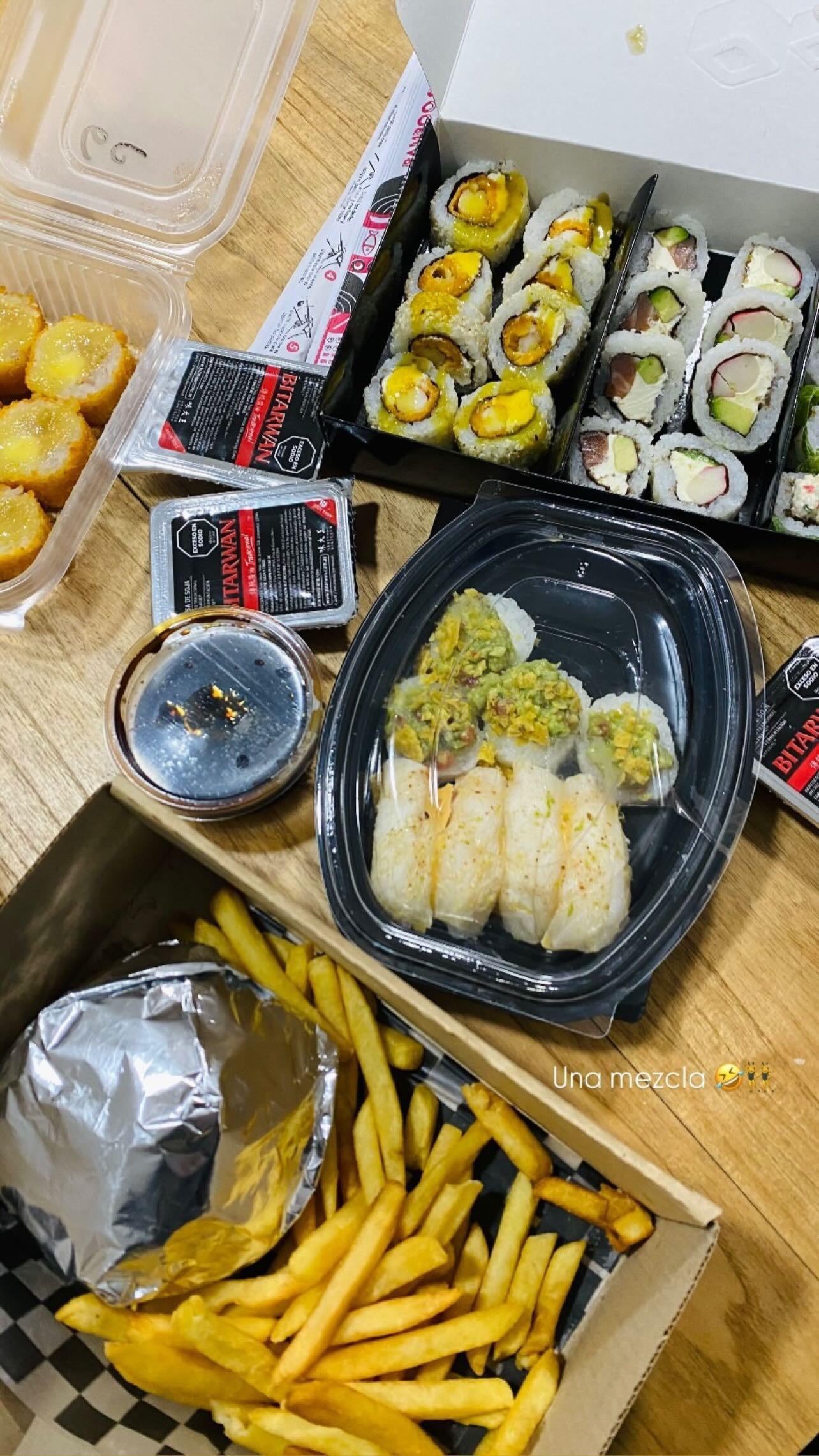 ah yes, the classic burger, fries, and sushi combo