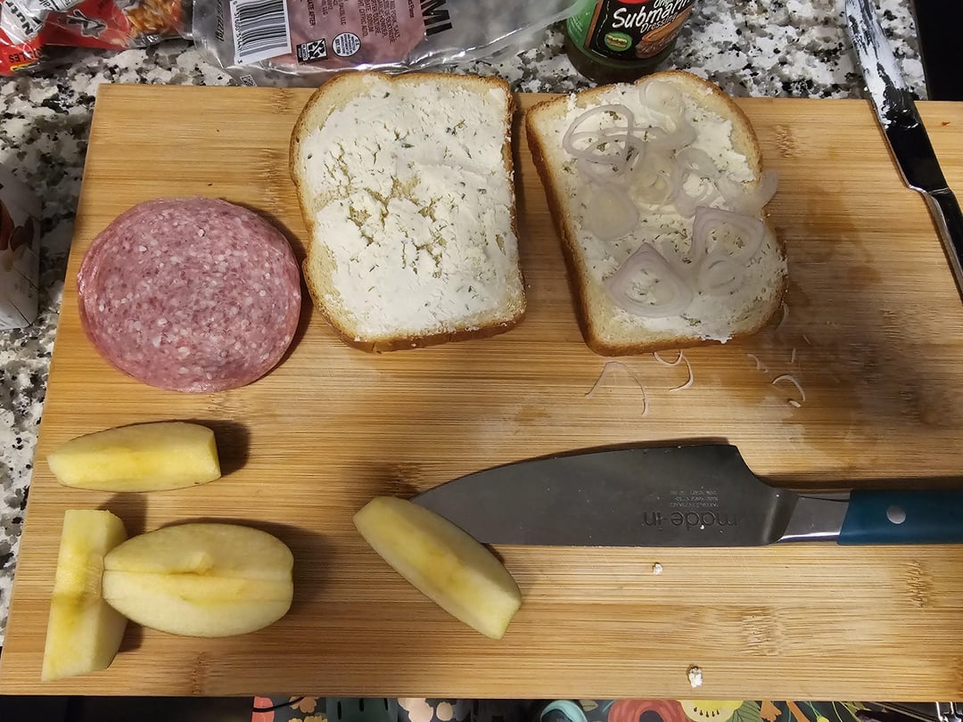 I forgot to take a picture of it completed, just ate it. My meat stacking game is **not** on point. I never know what to do, sometimes just flat stacked 2 high or I fold them in half and layer them. Any suggestions are welcome.