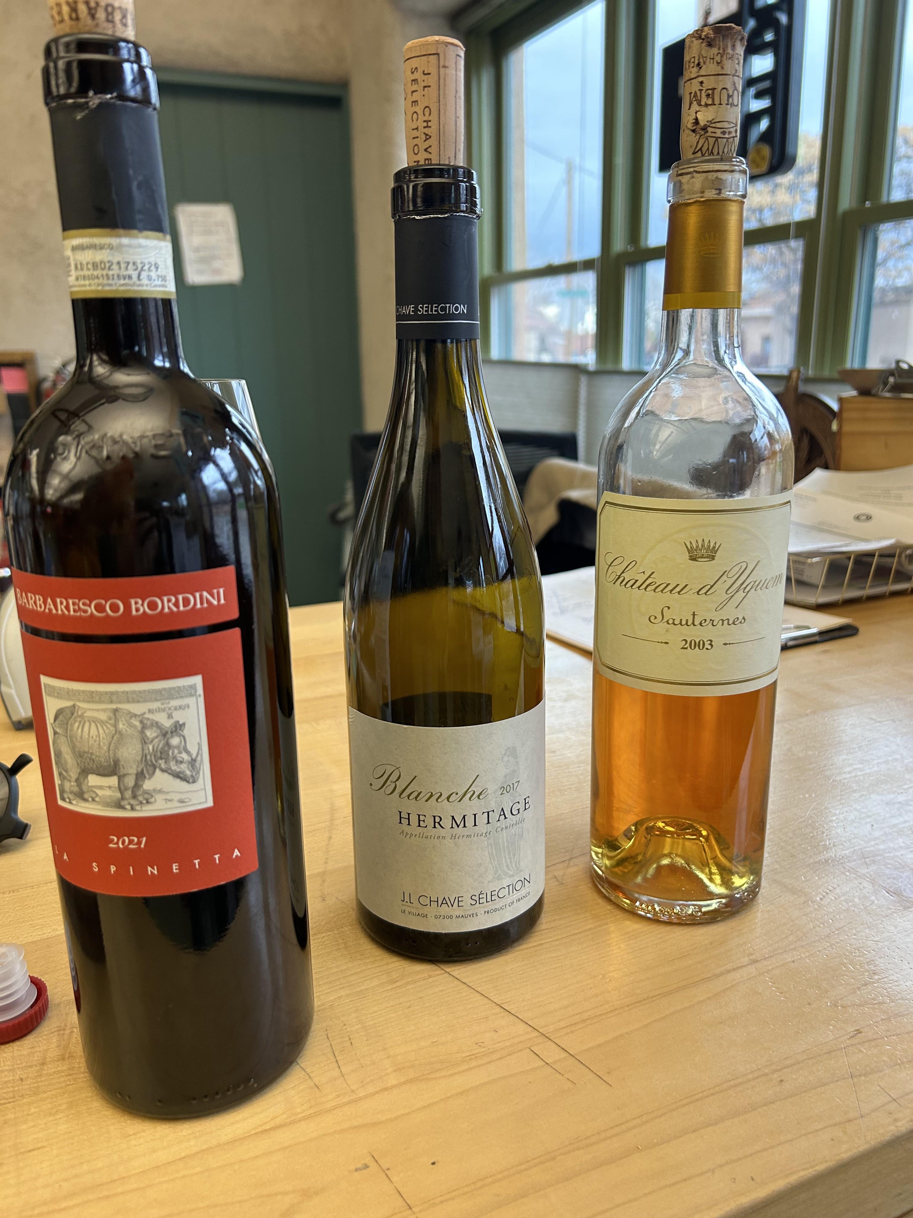All three were delightful (not pictured was Claude Riffault Rose), the Hermitage and d’Yquem were especially delicious. My first time actually trying d’Yquem (but I have some in the cellar). Was very grateful that my local wine shop was opening the good stuff…