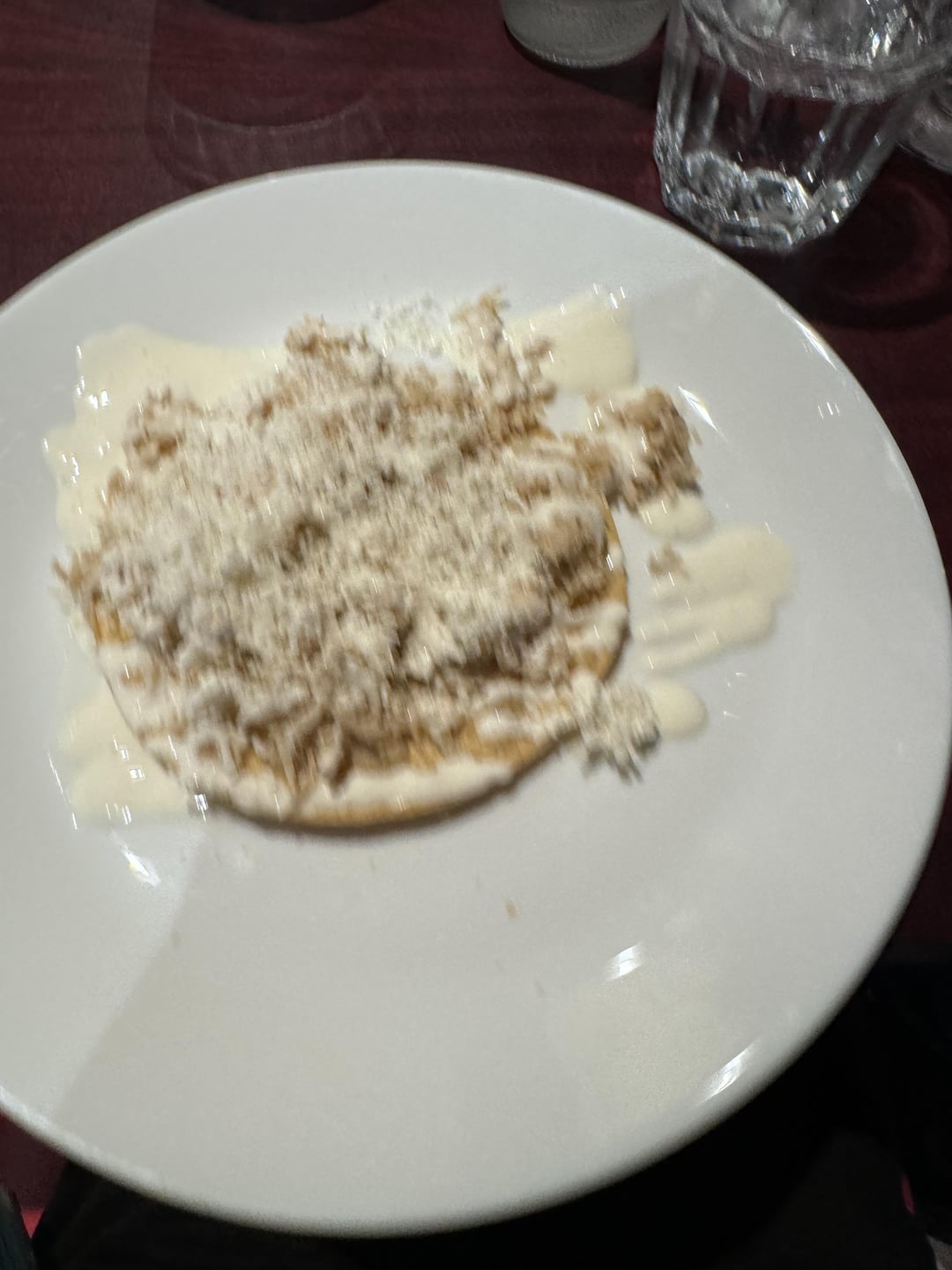 Baked tostada with chicken cheese and sour cream,the sour cream was very watery. The chicken was too. I think it was boiled, wasn’t greasy but watery. by angIeodic Write A CommentYou must be logged in to post a comment.