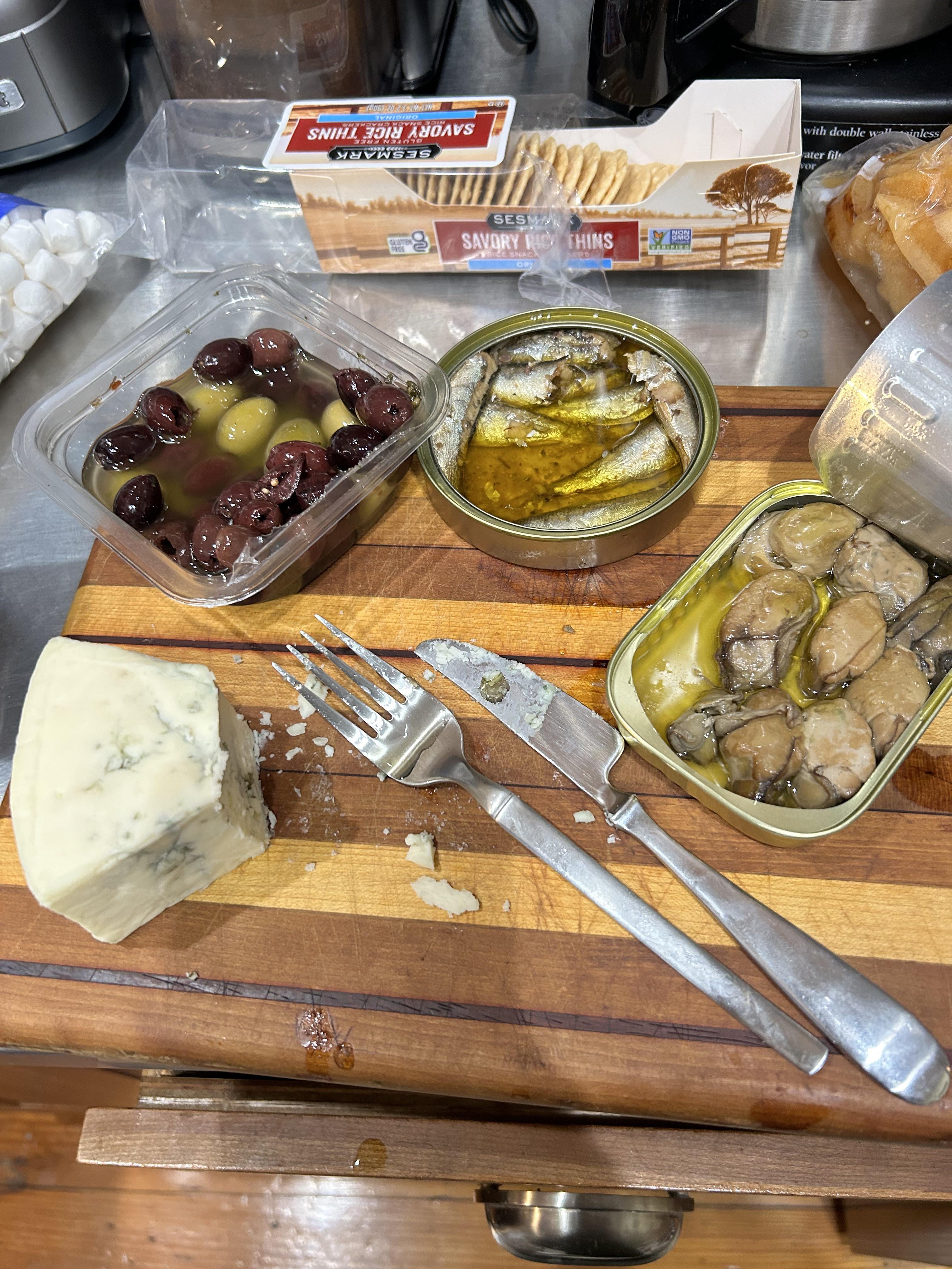 Bleu cheese, olives, sardines, smoke oysters, and rice crackers. The perfect food prep snack food. Actually makes the gluten free diet pretty easy too. by officialkeyboardcat 7 Comments buckclimbsthewall 11 months ago Eat a sardine on one of those jet puffed marshmallows you coward RobotWelder 11 months ago Those olives look gorgeous! Purplegorillaone 11 months ago If you can get it, try herbs de provence Bellavitano cheese. CMsirP 11 months ago Solid spread, amigo. FigureCorrect9147 11 months ago I love it. But some love/ some can’t appreciate. Olives are usually appreciated by all. Kudos. FigureCorrect9147 11 months ago Some folks just “you’re not eating it right “ cosmicat8 11 months ago Ah yes, I see you’ve made dinner for one haha! Looks lovely!!!Write A CommentYou must be logged in to post a comment.