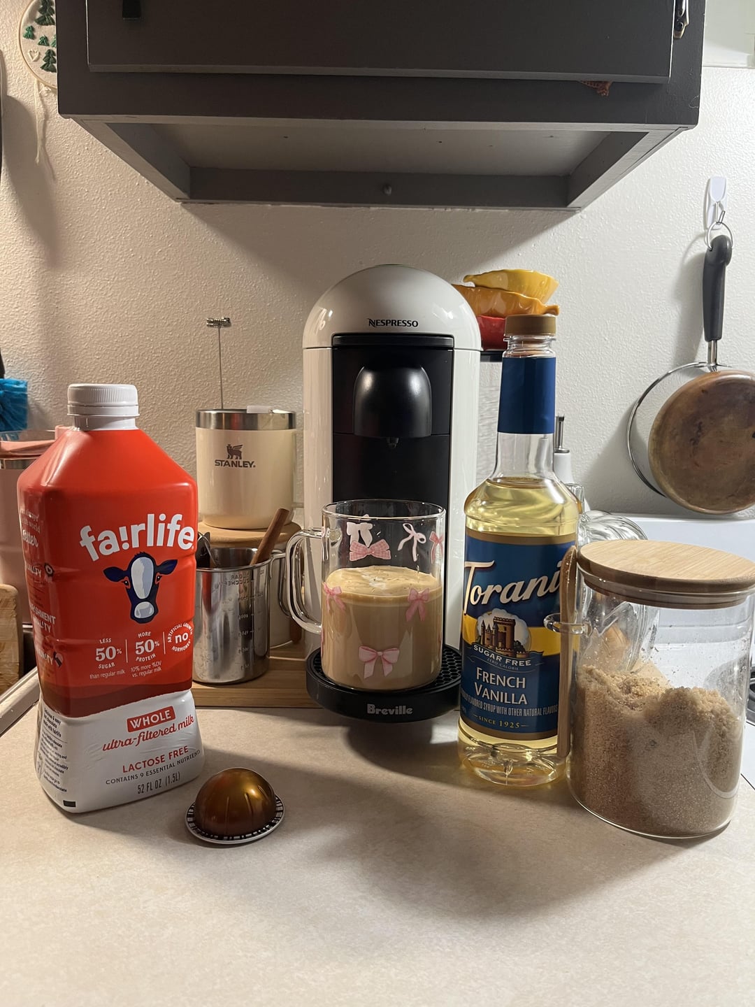 My fav vanilla latte recipe: – Dolce double espresso pod – 2 tbsp of sugar free vanilla syrup – 2 tsp of brown sugar – ~ 1 cup of whole milkClassic and delicious βοΈ I love my little coffee bar! π©· by Cute_Bear333 2 Comments CarobRecent6622 11 months ago Yum!! I have a brown sugar vanilla latte everyday Mysterious_Status_11 11 months ago I’m going to try adding a little bit of brown sugar to mine!Write A CommentYou must be logged in to post a comment.