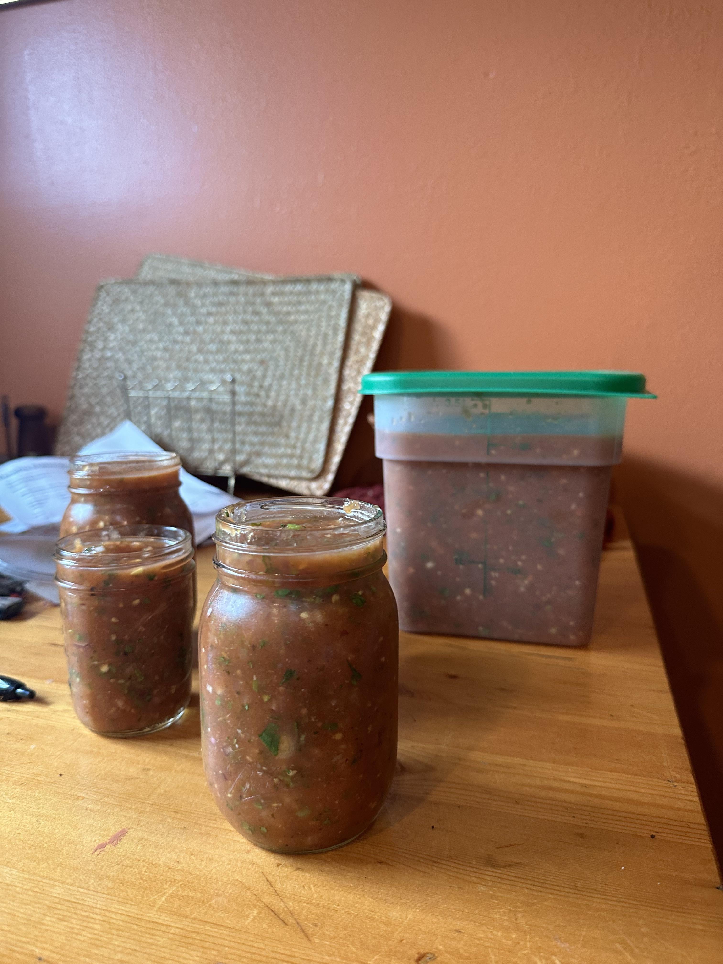 You can use canned peeled tomato. We used from the garden. Blanched shocked and peeled.