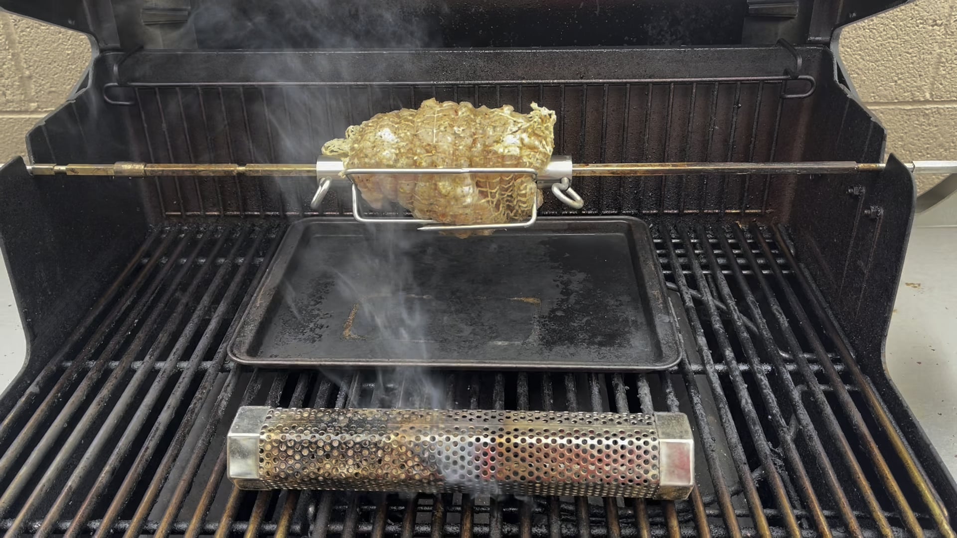 We had our turkey last night since the rest of the family doesn't care for it. It's just the two of us so we used Butterball netted breast with a smoke tube of bear mountain bourbon pellets. 275 for 3 hours and it turned out great! I added some mirepoix for the gravy and had a leftover baked potato from the night before. Happy Thanksgiving!