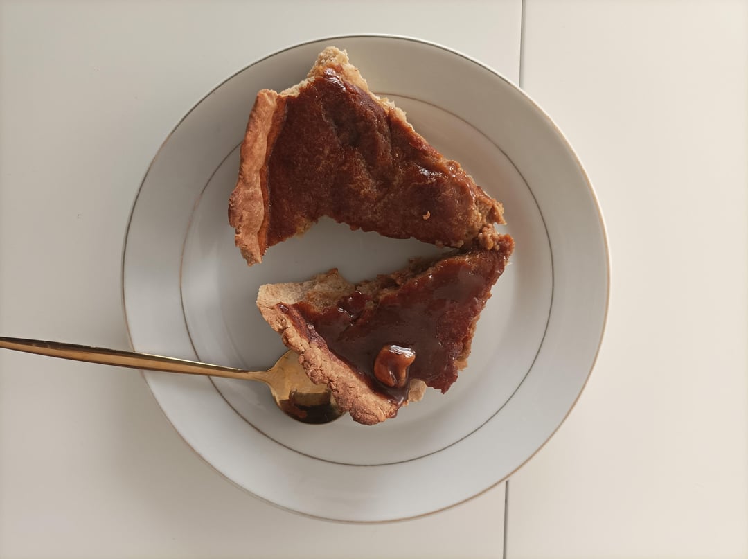 Pumpkin pie, small slices, one with caramel on top and one normal. Just to add, was not dense, more like crumbly.