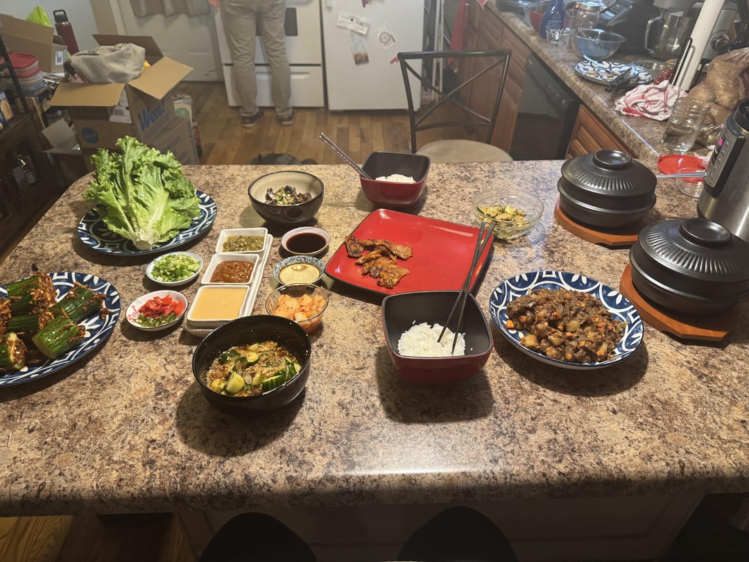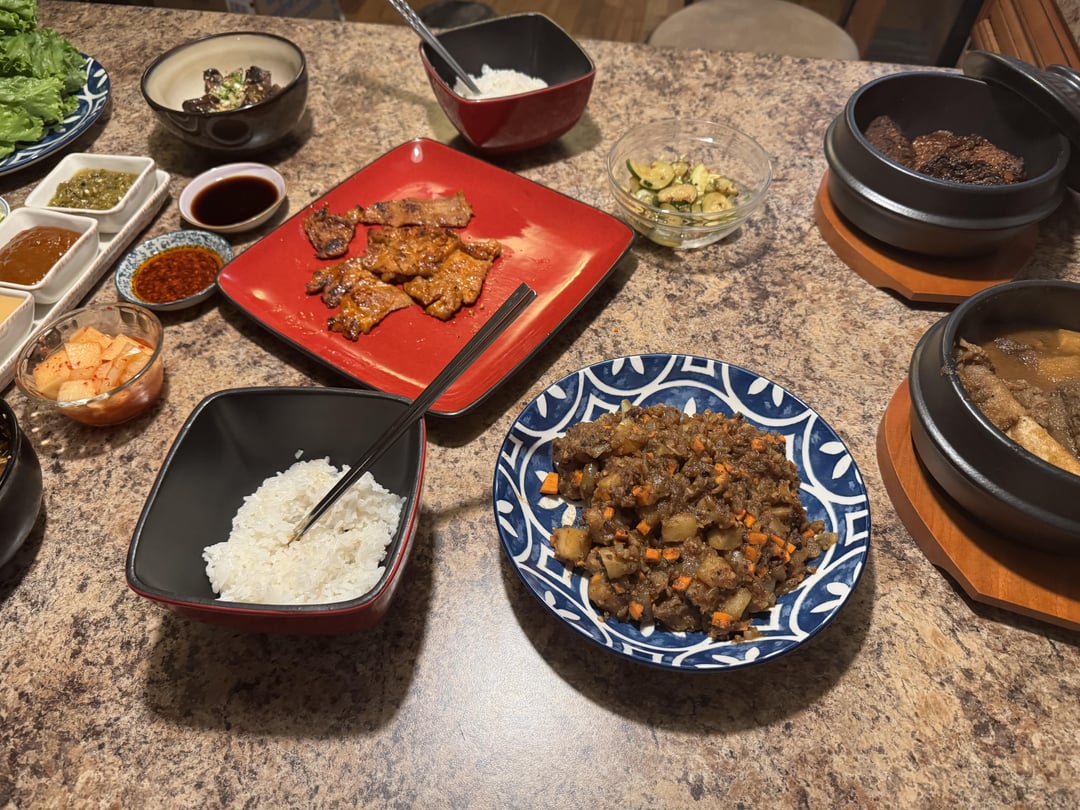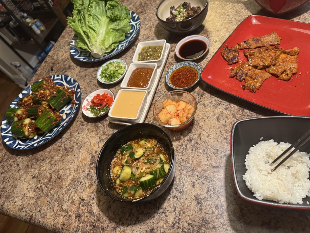 Korean Thanksgiving because it was just us, so why not. Brisket, galbijjim, pork bulgogi, and various banchan