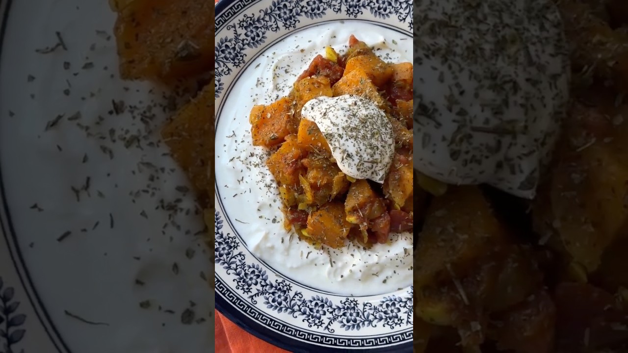 Spread a generous layer of yogurt sauce on a serving platter. Place the cooked squash mixture on top. Finish with a drizzle of the reserved yogurt and a sprinkle of dried mint for a pop of freshness.