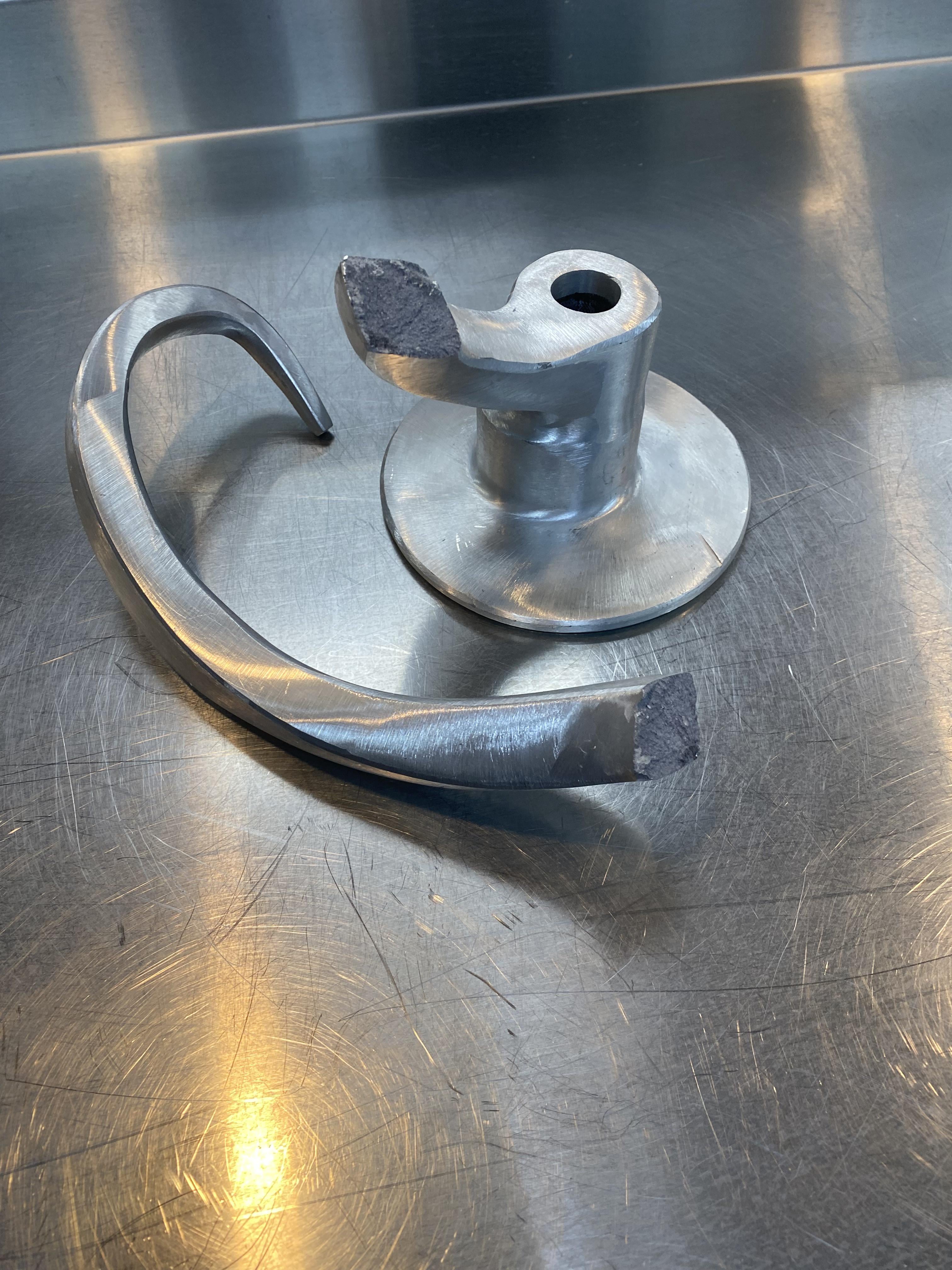 Thats rough, it looks like a pretty recent hook, I have seen this happen before, it was likely a much older mixer, I’m thinking 90’s origin. One of our line cooks was crushing up roasted lobster shells before making brodetto, we were all on the other side of the kitchen with a concrete wall and the exhaust system between us and the mixer but we all heard it when it happened. Sorry you are doing more by hand for the next week or two, sucks.