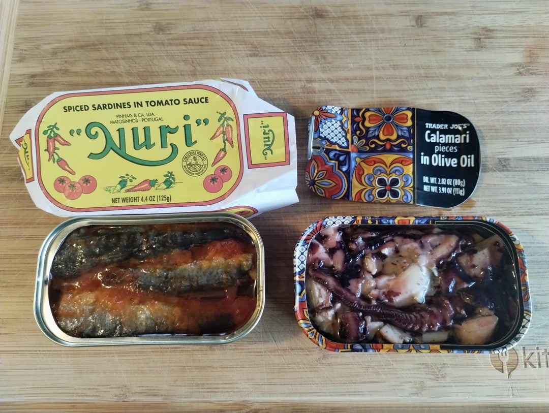 The camari – decent. Kind of bland out of the tin but the texture is nice and not rubbery. I would probably drain these next time and top with hot sauce.