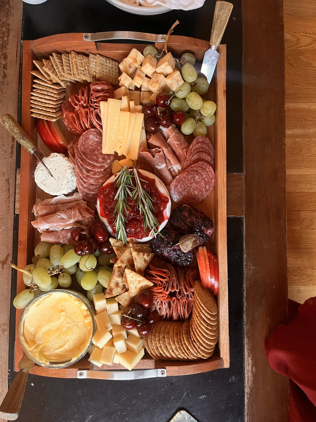 I LOVE to use fresh herbs as garnish on my boards. If you do goat cheese and jam add some mint leaves. It looks beautiful and tastes good with the cheese / fruit combination. Looks beautiful!