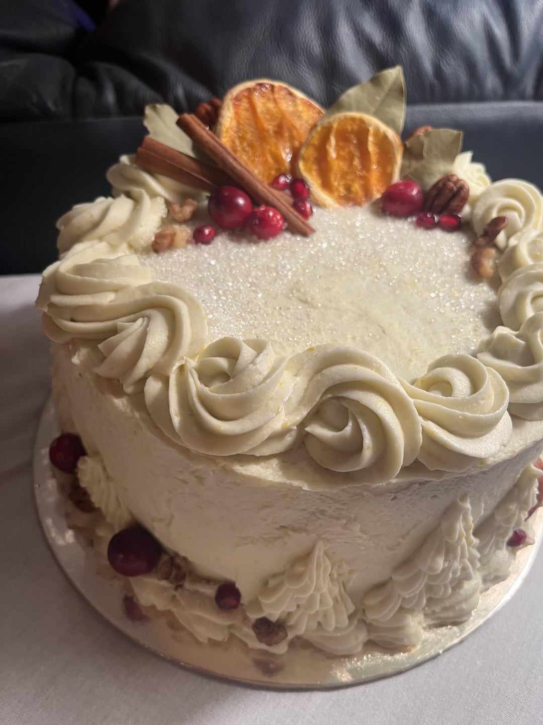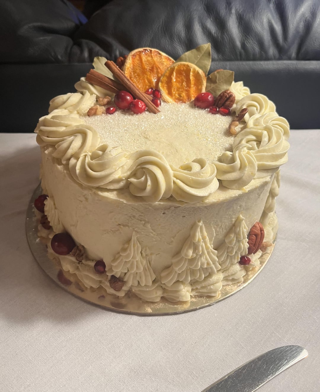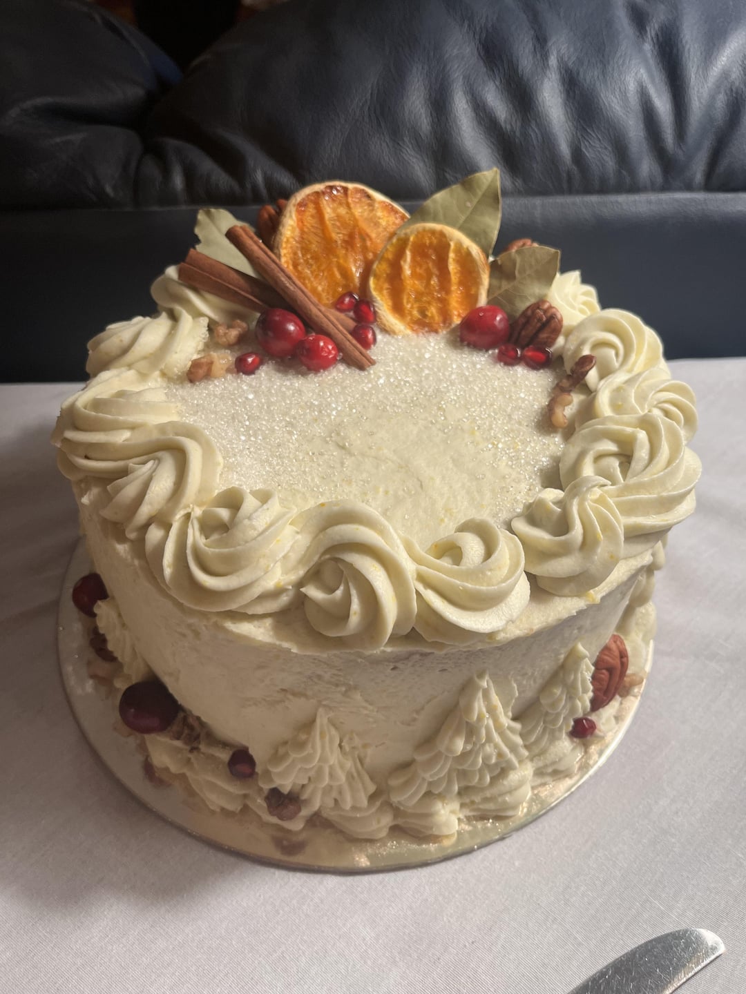 Cranberry orange cake with orange cream cheese frosting I made for thanksgiving!by Kitty_mustdie 18 Comments JustYourAvgHumanoid 11 months ago It’s beautiful Green-Cockroach-8448 11 months ago Pretty and festive 😍 Western_Emergency222 11 months ago It looks beautiful! CelebrationDue1884 11 months ago This is beautiful!🤩 Kashsters 11 months ago Gorg! I esp love the trees piped on the side! LalalaSherpa 11 months ago Extravagantly perfect & the flavor combination is 🤌 FleshWoundFox 11 months ago I bet that tastes delicious. uncle_bobbbb 11 months ago Oh this is absolutely dreamy United_Floor_6646 11 months ago Looks and sounds very delicious! Great job 👏🏼 NewbieMaleStr8isBack 11 months ago Beautiful Spacelady1953 11 months ago It’s a beautiful cake. Sounds delicious jorban100 11 months ago Love the decoration, looks so festive! bunnybearbee 11 months ago oh hell yeah, you’re the one that made the apple pie cake! AmbassadorSad1157 11 months ago Gorgeous. Beautiful decor and flavors sound delicious. So appropriate for the holiday season. Happy_Little_Bunny 11 months ago Everything about this is absolutely stunning! 😍 pam-jones 11 months ago What a delicious combination! I would love the recipe. It’s a beautiful cake as well! Really beautifully decorated!!!!💕 Ill_Pepercat 11 months ago Love it! This_Miaou 11 months ago Oh that is BEAUTIFULWrite A CommentYou must be logged in to post a comment.