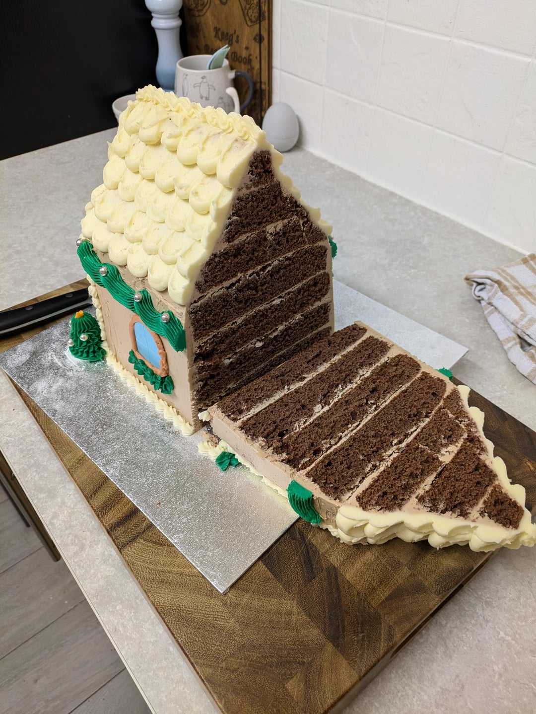 Made a chocolate cake with chocolate buttercream and carved and decorated it to look like a gingerbread house!! What do you think? by courtneycrunch17 16 Comments Triguntri 11 months ago This is wonderful and so well made it! It is very inspiring to me to try this design. You did an amazing job! iso-my-purpose 11 months ago This is so beautiful and so much fun! You are very talented, OP! roccoroll 11 months ago This is amazing! So so cute. DizzyPear9798 11 months ago Wow!!!!! If someone brought this to my house i would die! Unusual-Tree-7786 11 months ago The only thing that could have made this better would have been a gingerbread cake… with the icing. As it is this is amazing NewbieMaleStr8isBack 11 months ago Fantastic Kitty_mustdie 11 months ago THIS IS SO CUTE OMG so creative as well! Obvious_Director_113 11 months ago This is a lovely cake driffe 11 months ago Oh that is cute!!!! What a great idea!!! Alice_Pi314 11 months ago Wow! Very well made. It looks delicious too. Great work. Thank you for sharing DolphinDarko 11 months ago Pretty and looks delicious!!! Snail_Mailer 11 months ago Wow this is just like the Holiday Baking Championship!! rainyhawk 11 months ago Very clever! kymilovechelle 11 months ago Perfect layers and super sweet and cute design! juanitaborrica 11 months ago So beautiful 😍 RedRider1138 11 months ago I fully thought it was a gingerbread house, you fooled me! 😄Write A CommentYou must be logged in to post a comment.