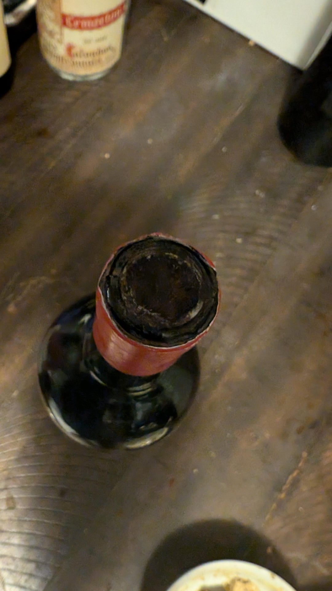 Got this from auction around 6 months ago. Decent bottle condition and fill. But once I peeled back the foil and saw we had seepage and some nice fuzziness, I took the photo after I wiped the top. Had to use a razor to scrape some caked on ring. Was able to almost get the full cork out but that last bit broke off.