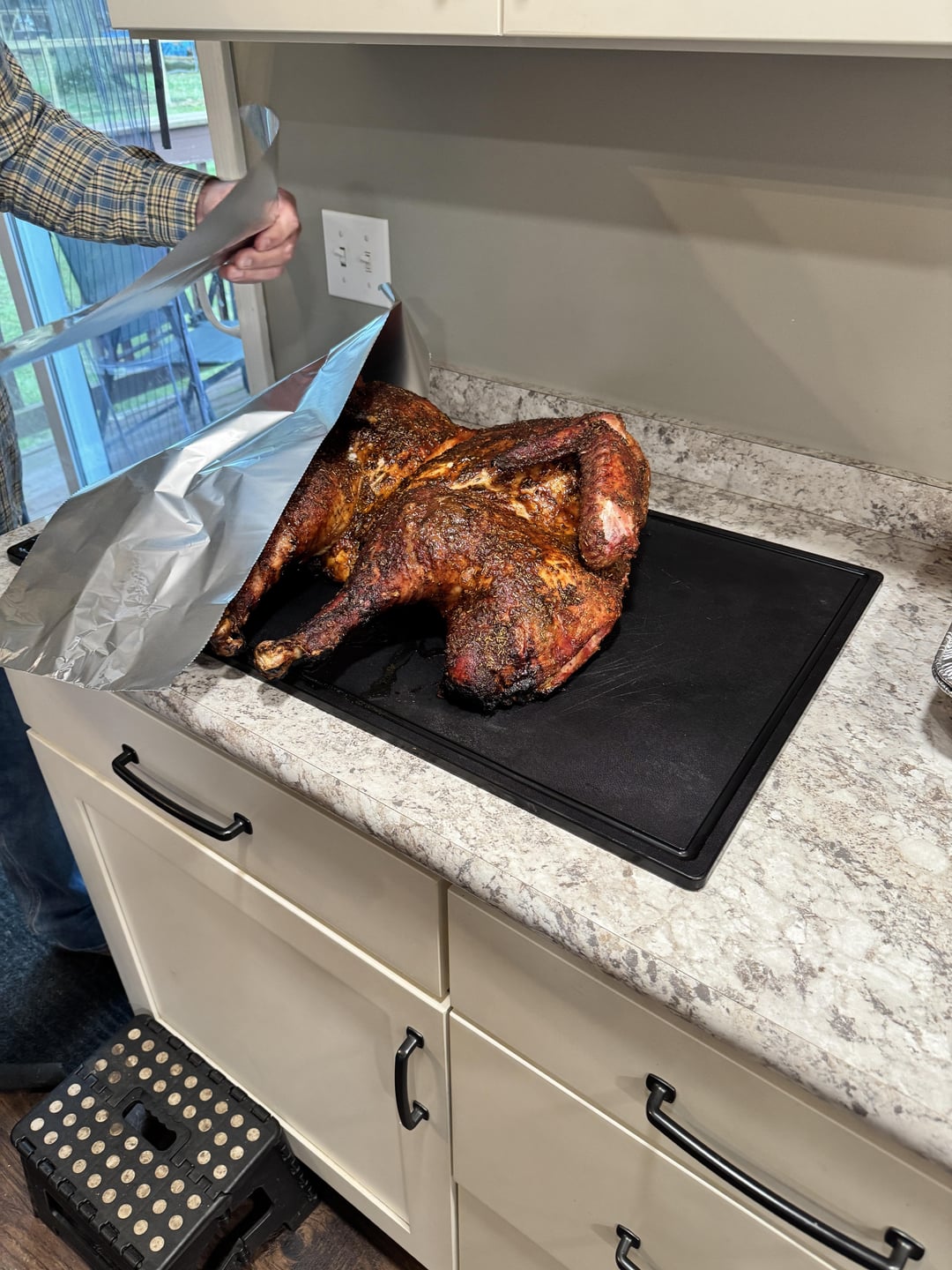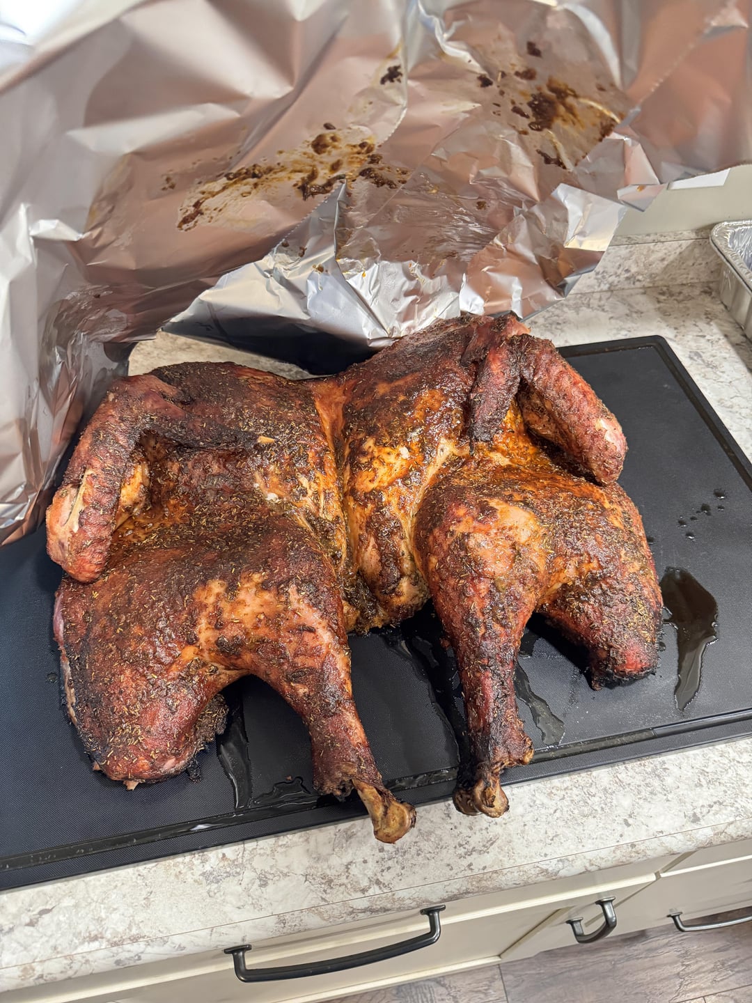30lb spatchcocked turkey came out absolutely amazing. We had 25 guests and everyone said it was the best they had ever had. Made an absolute mess and the grill needs a major cleaning but so worth it.