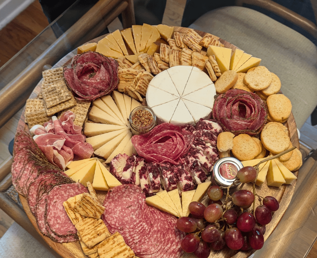 Me and my fiance's first charcuterie attempt, it was a little rushed but it was devoured immediately afterwards. I've been looking at this sub for while leading up to making it, thanks everyone for your great ideas 🩷,